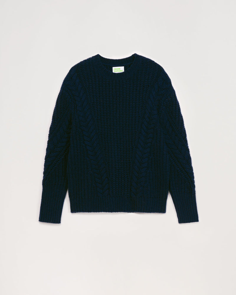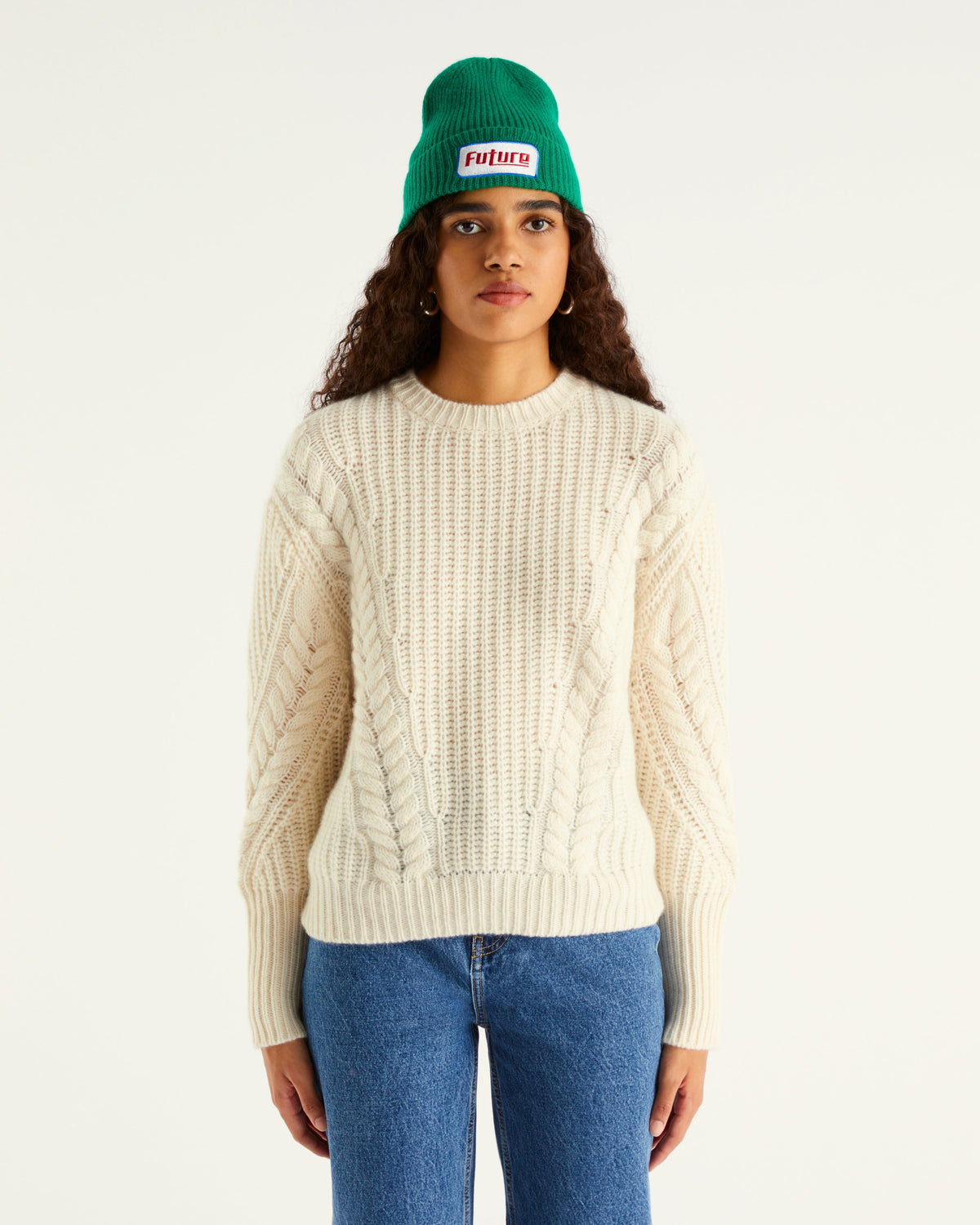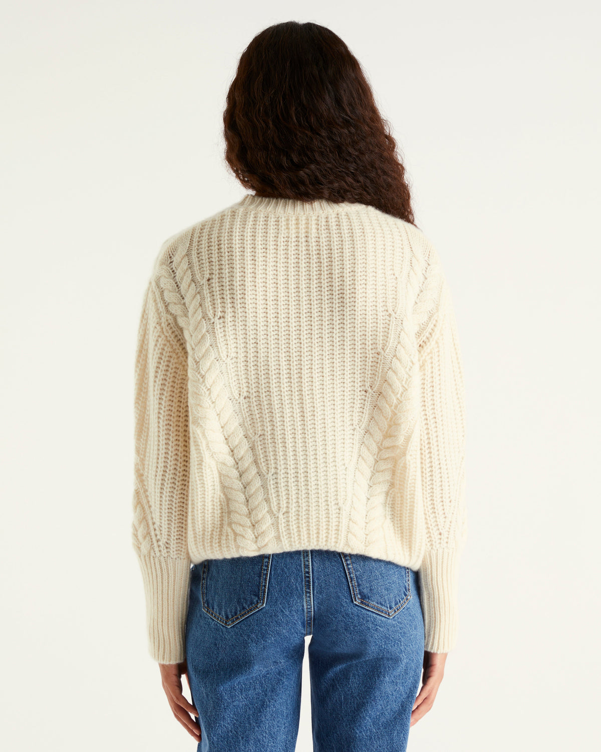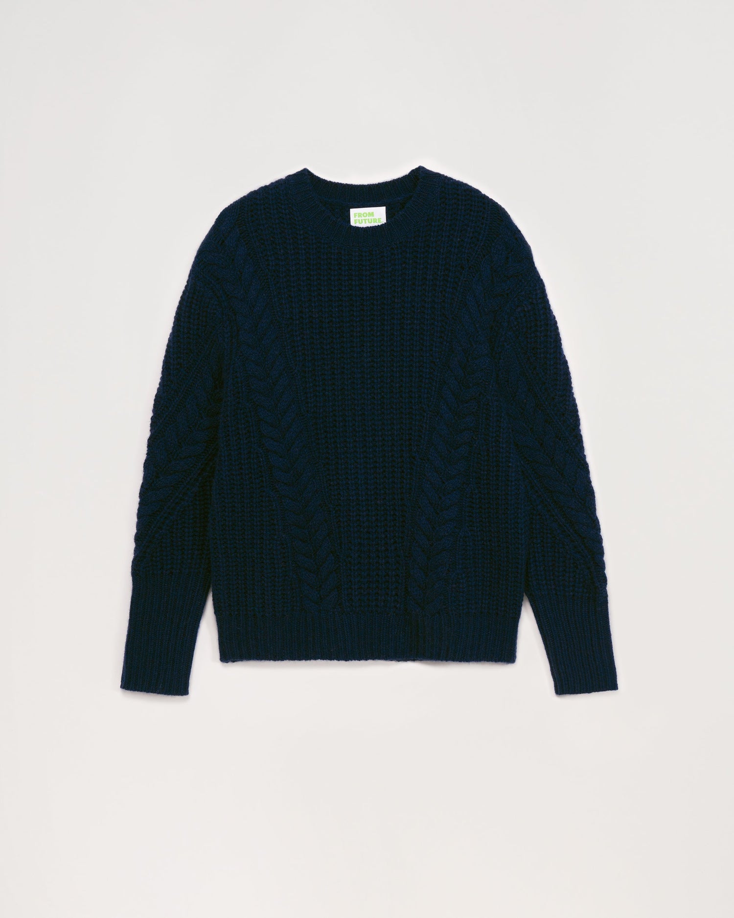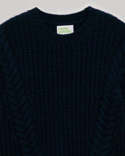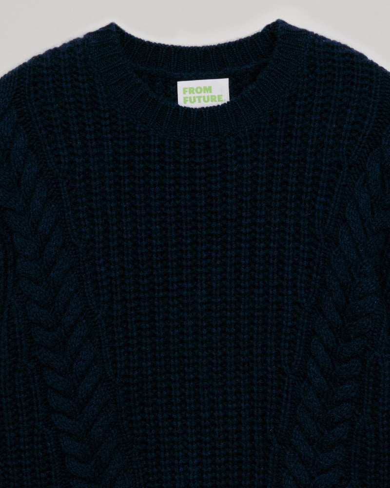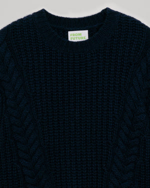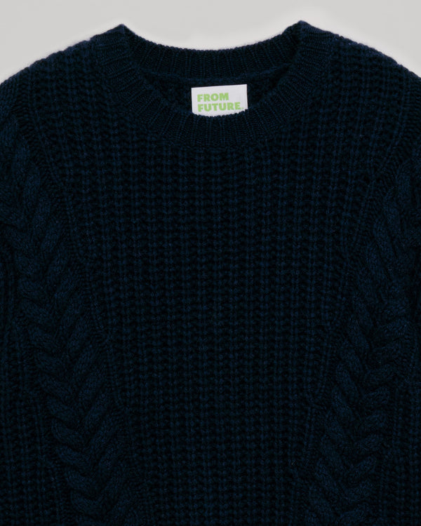 Sweater Col Rond Maille Perlée À Torsades 6 Fils - 100% Cachemire - Encre