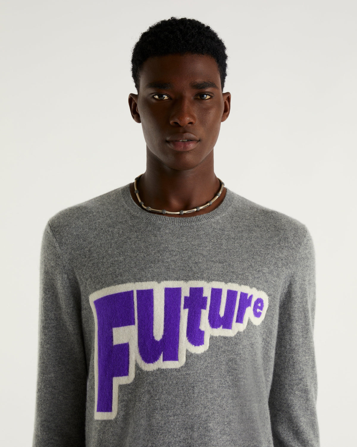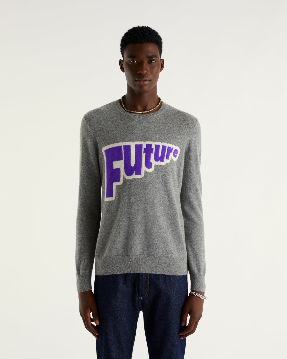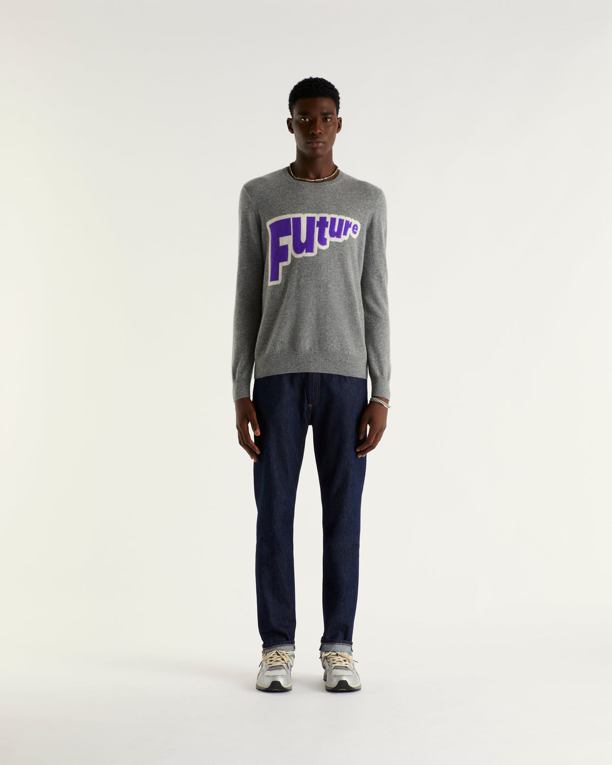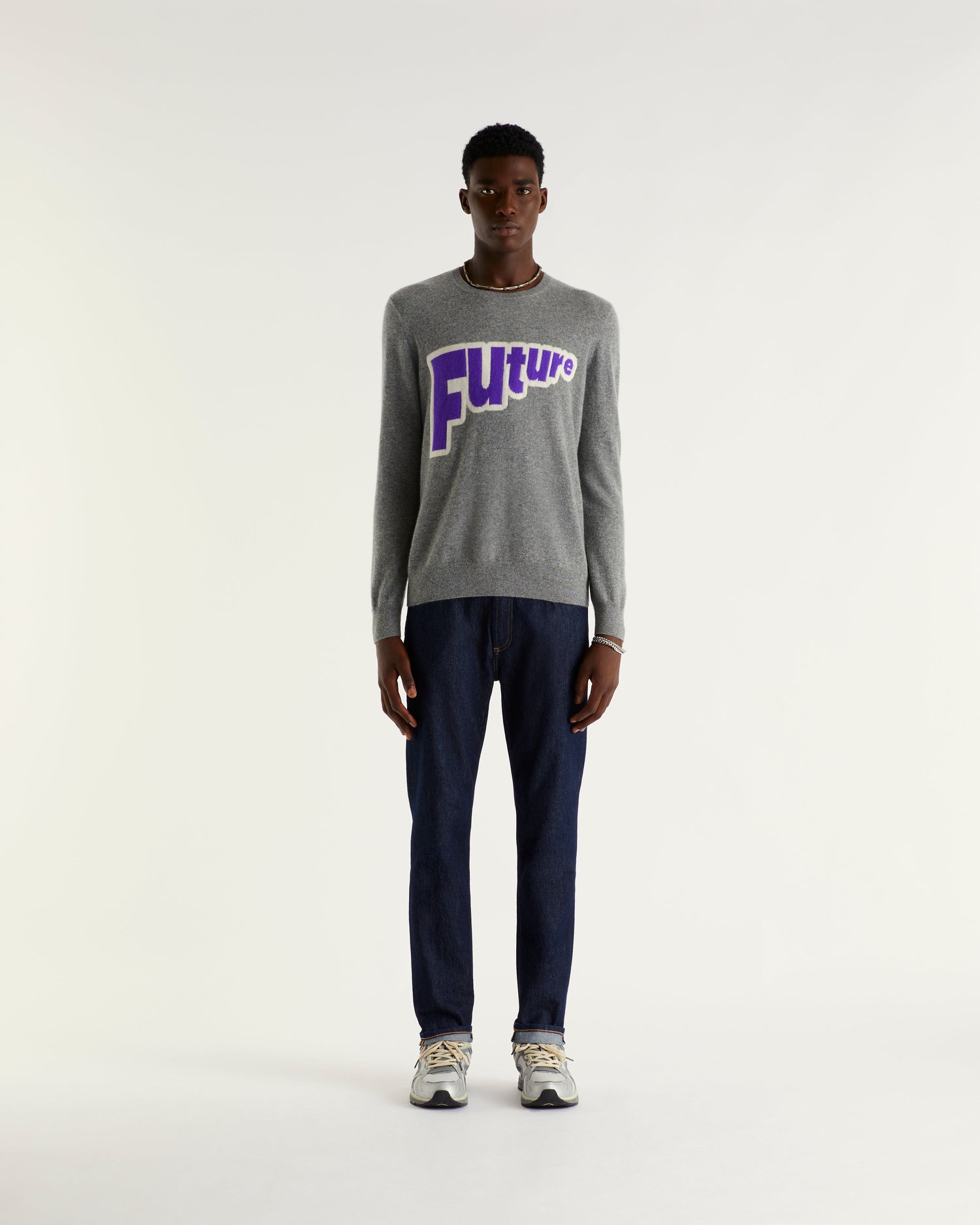 Sweater Col Rond Maxi Future 2 Fils - 100% Cachemire - Gris chine fonc