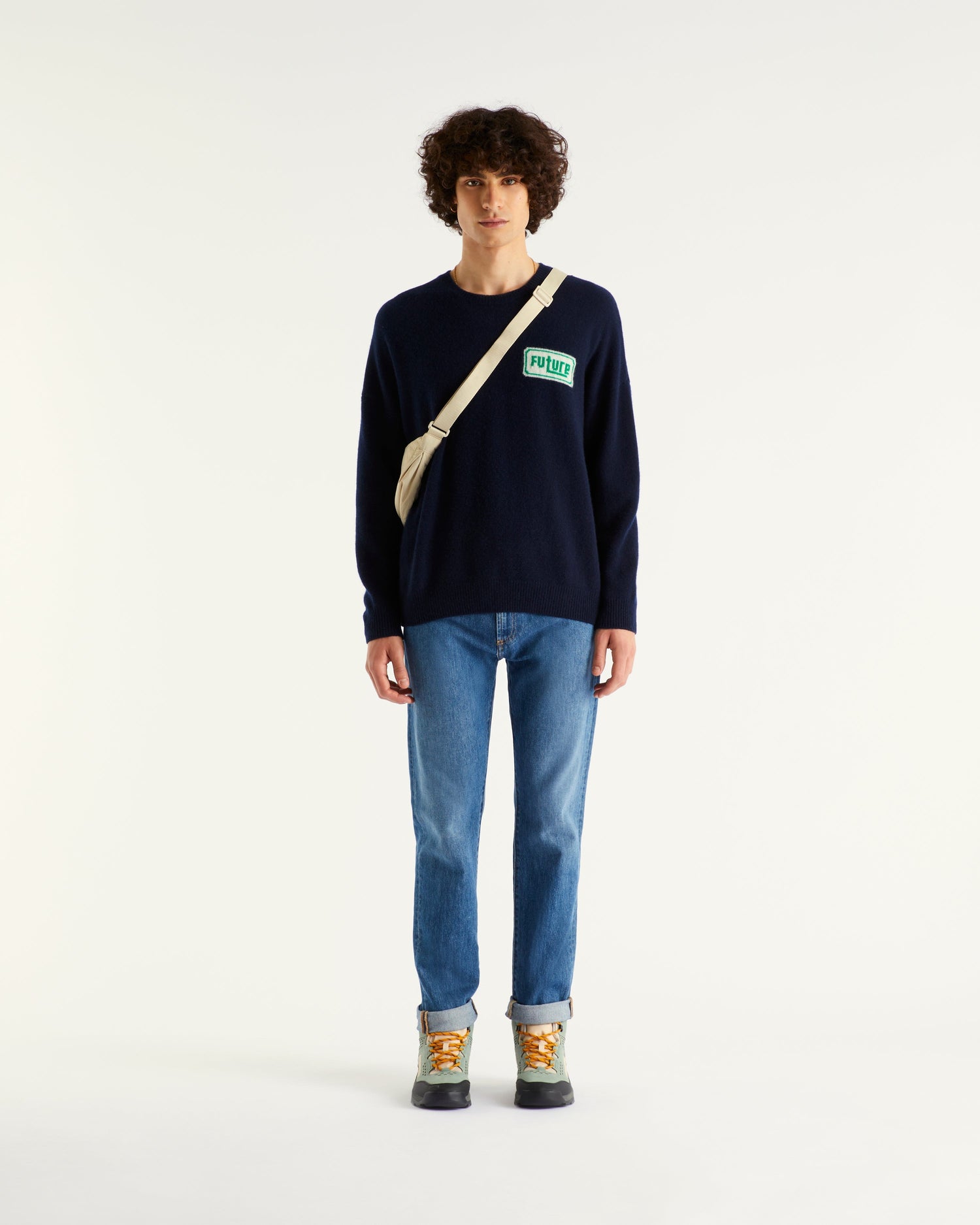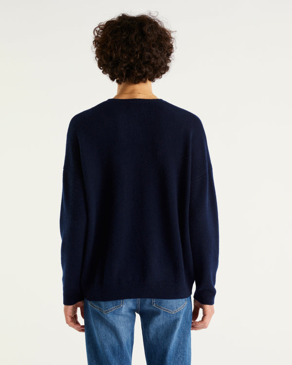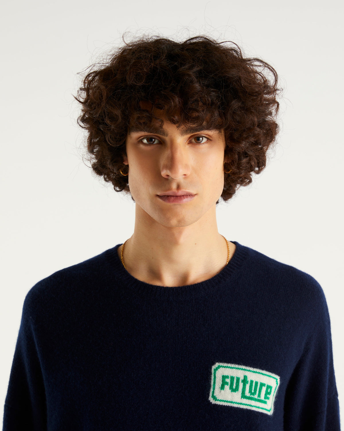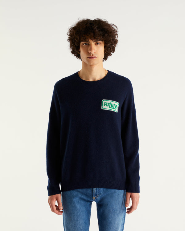 Sweater Oversize Round Collar Future Chest 4 Son - 100% Cachemire - Navy