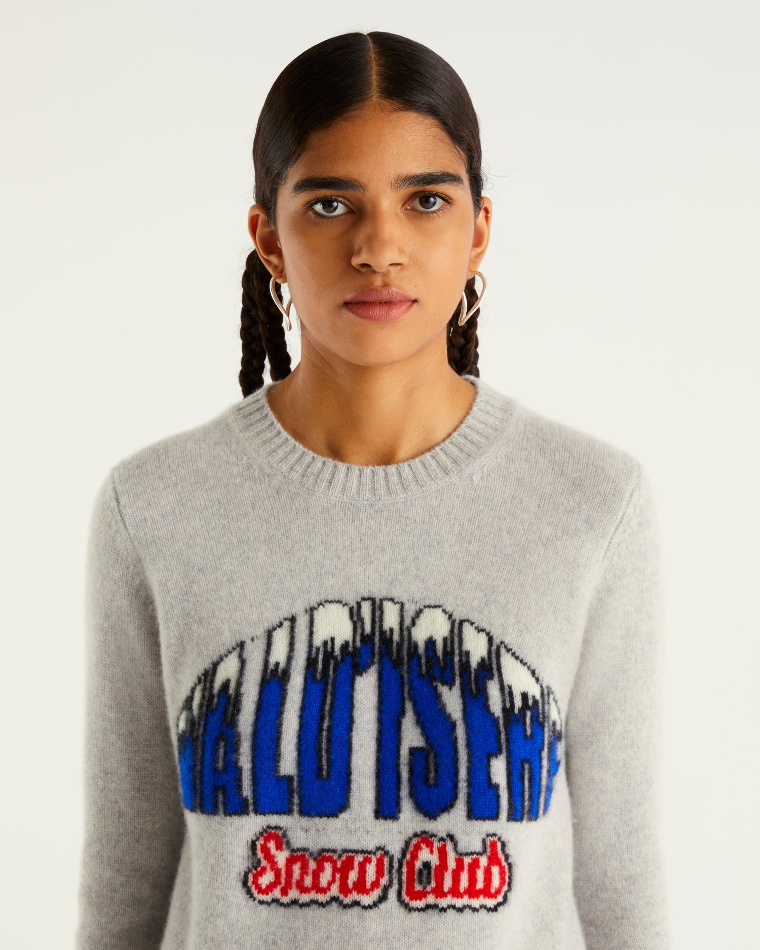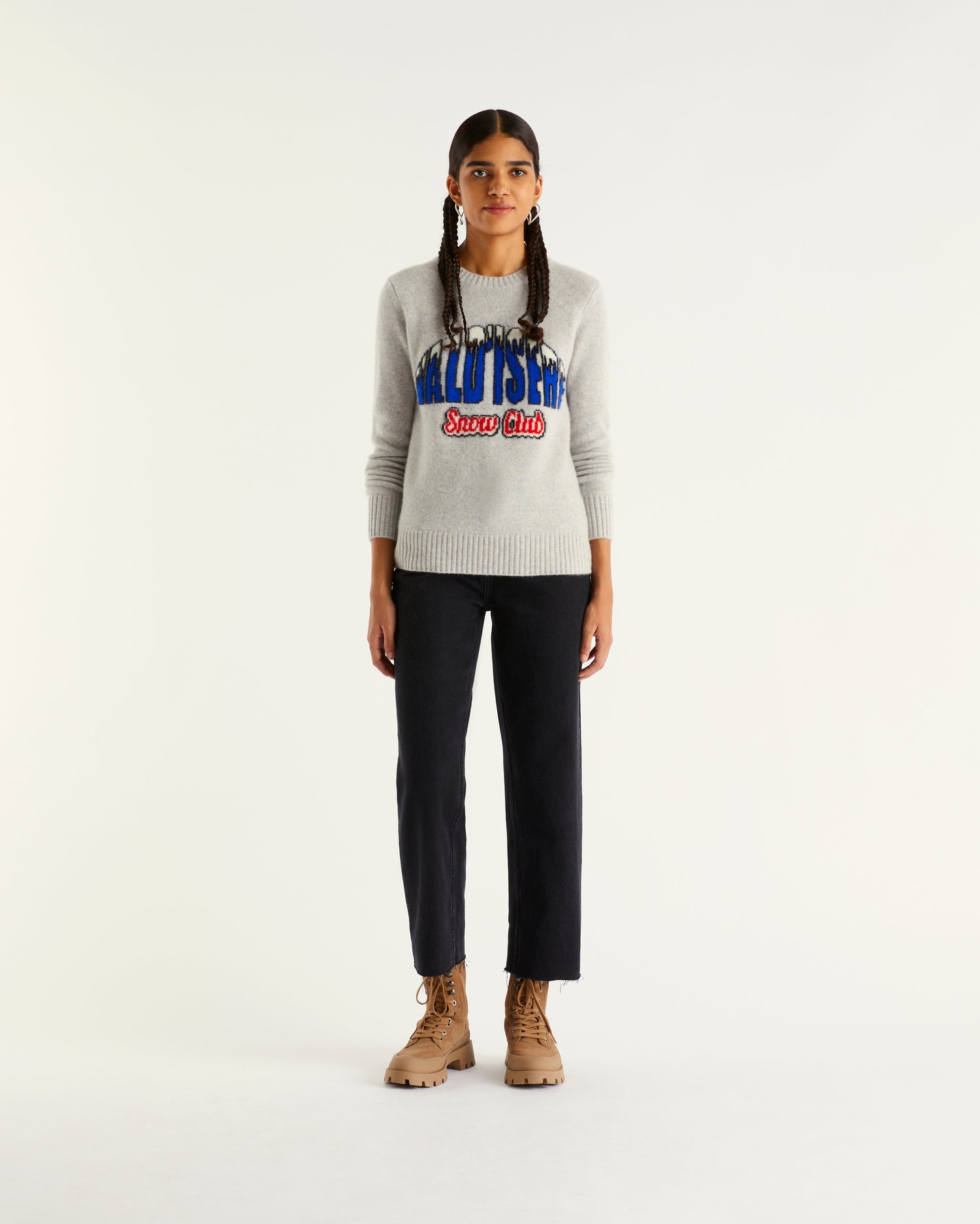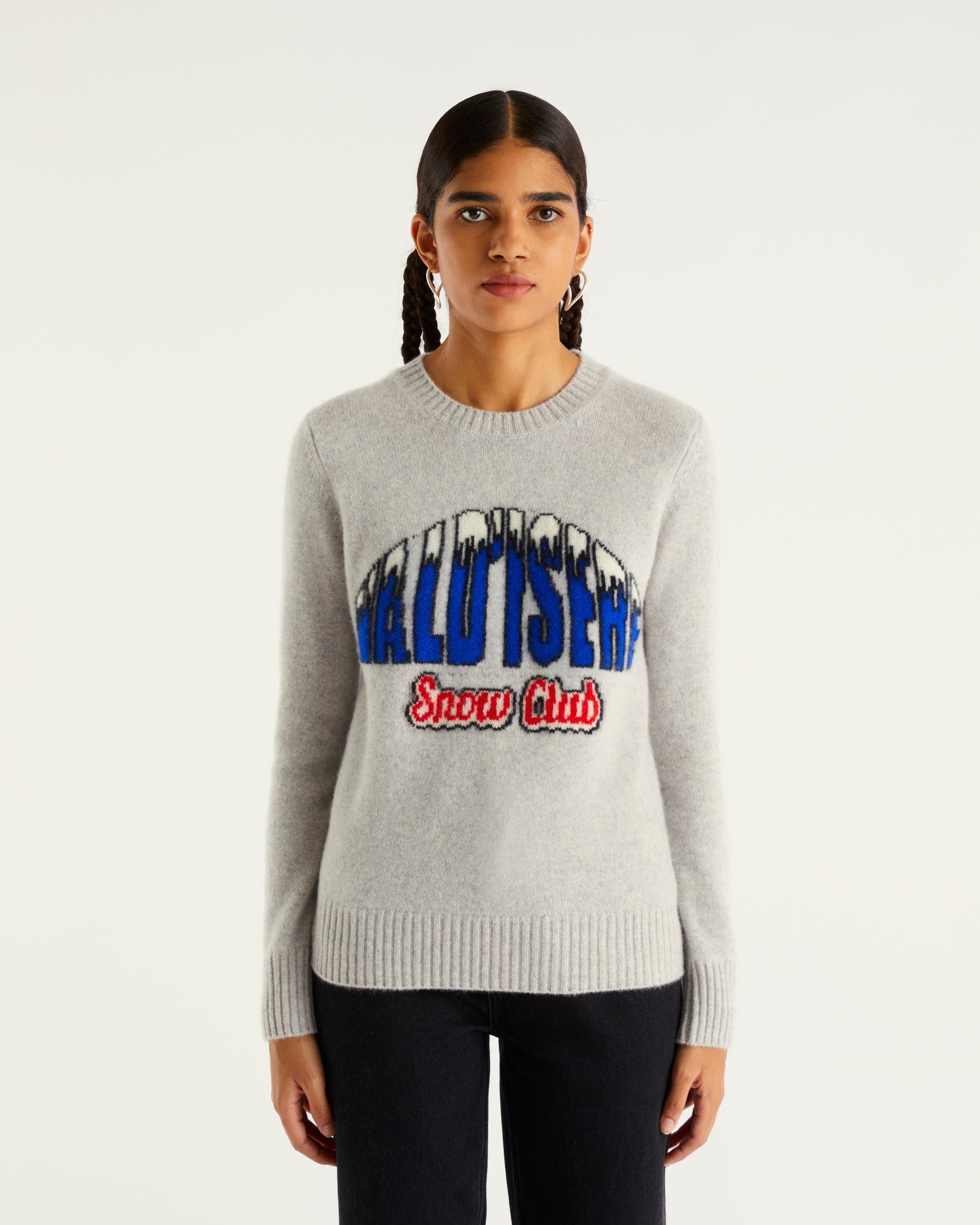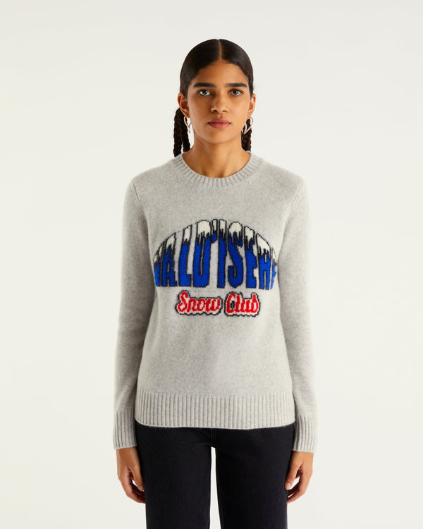 Sweater Col Rond Val D'Isère Snow Club 4 Fils - 100% Cachemire - Gris chine clai