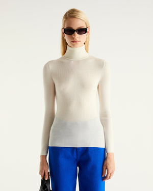 Sweater Col Roulé à Côtes Ice Wool - 100% Laine Mérinos - Ecru