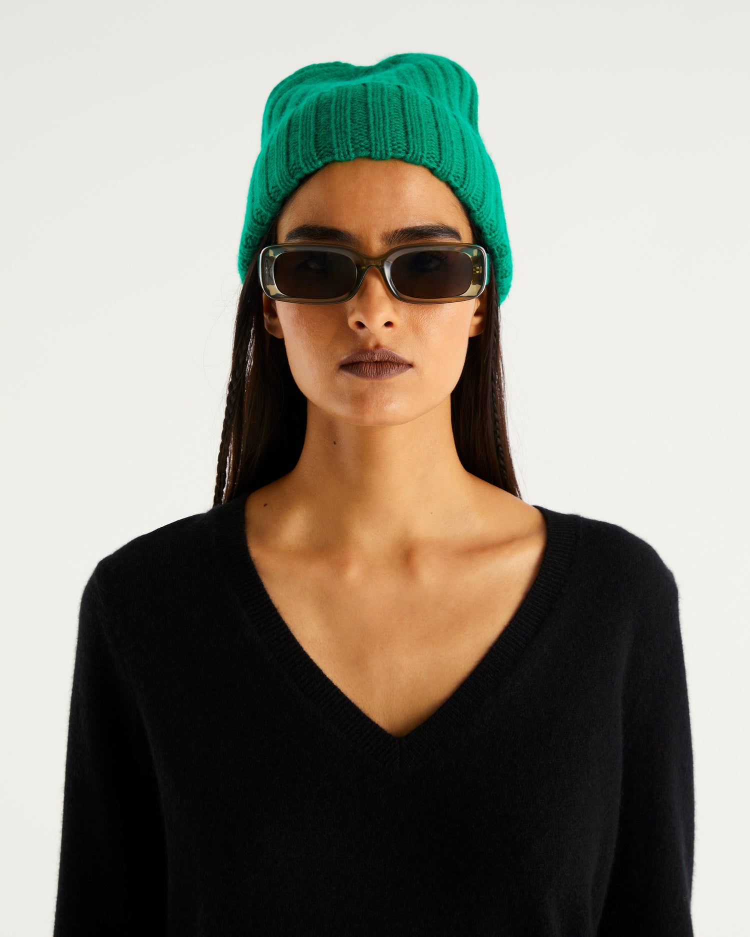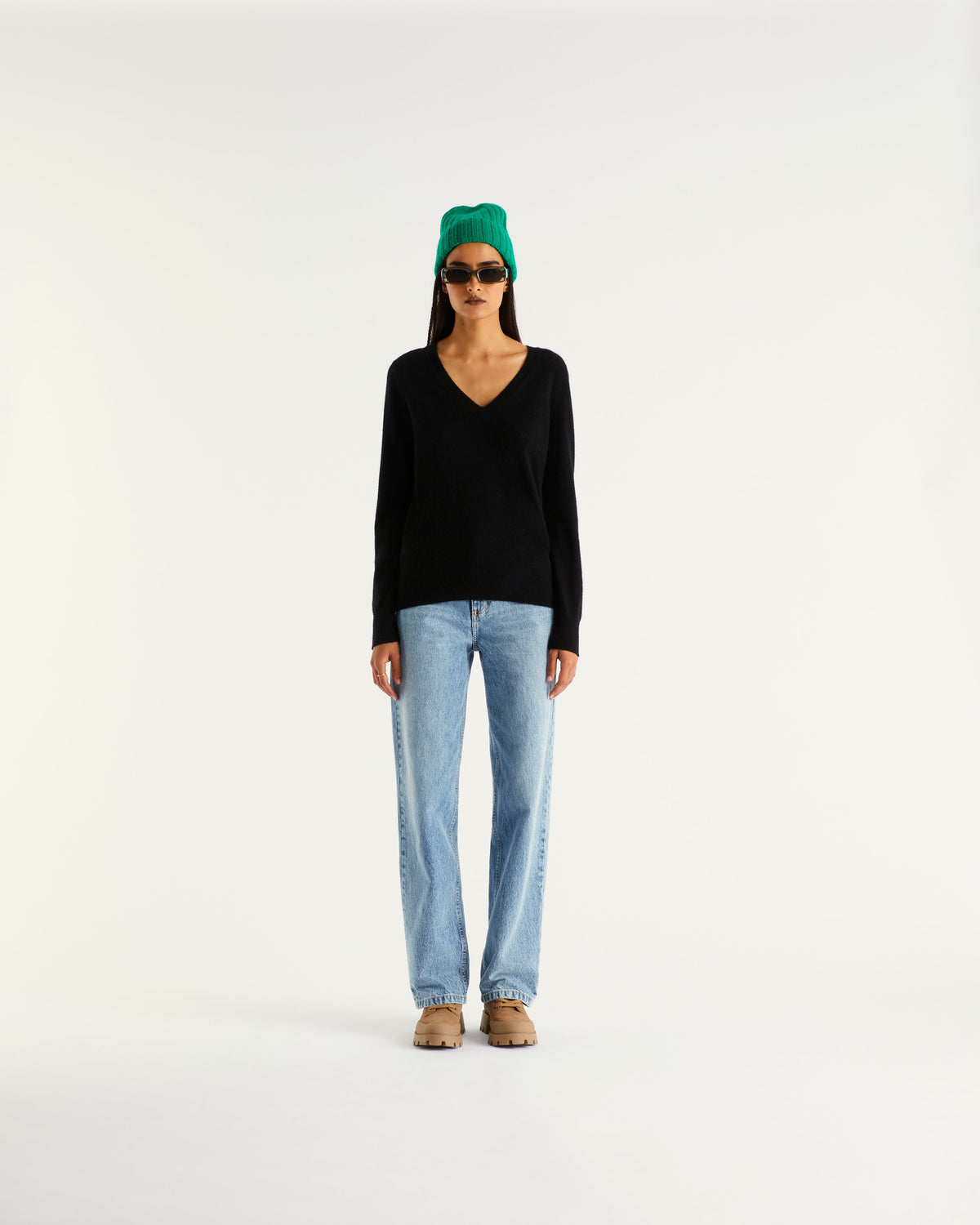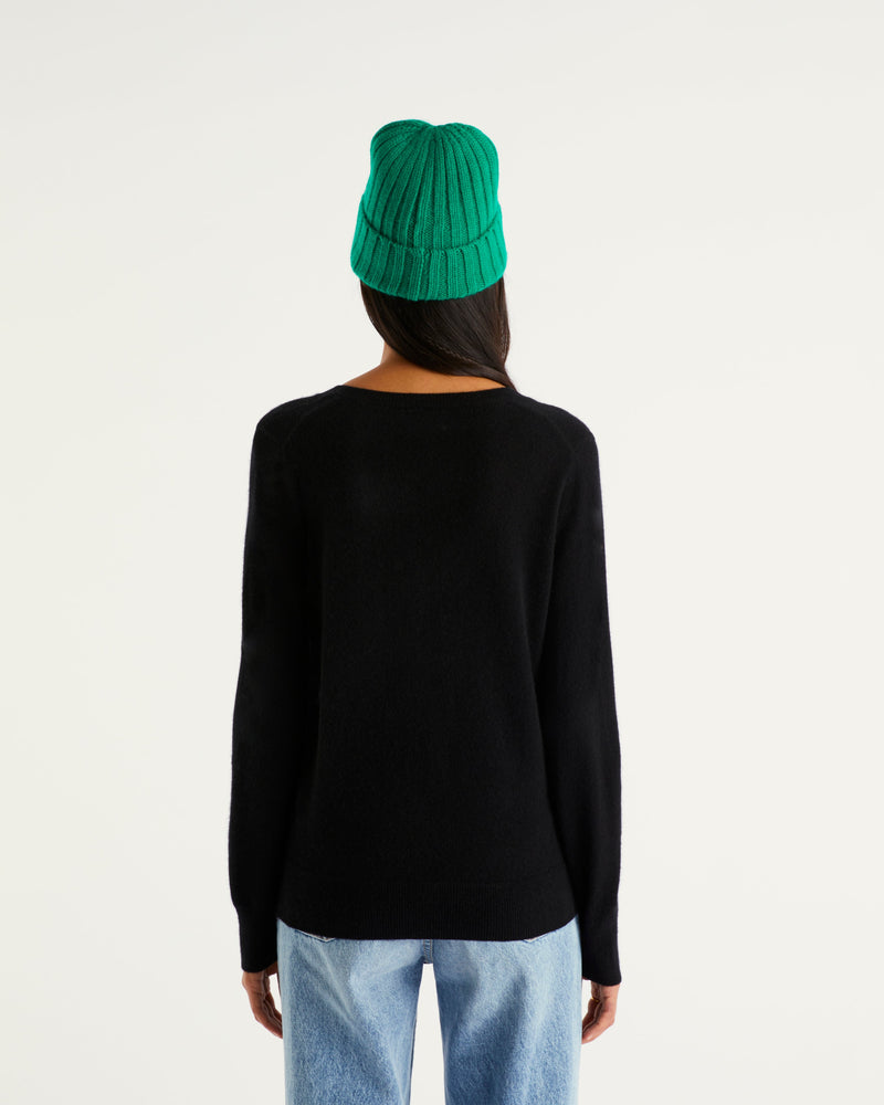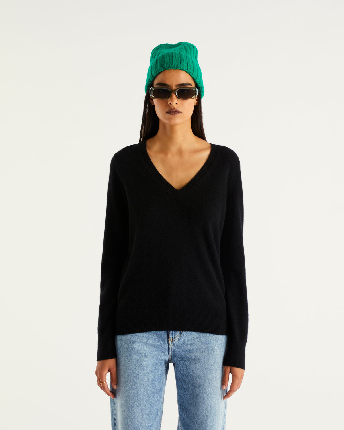 Sweater Col V 2 Fils - 100% Cachemire - Noir
