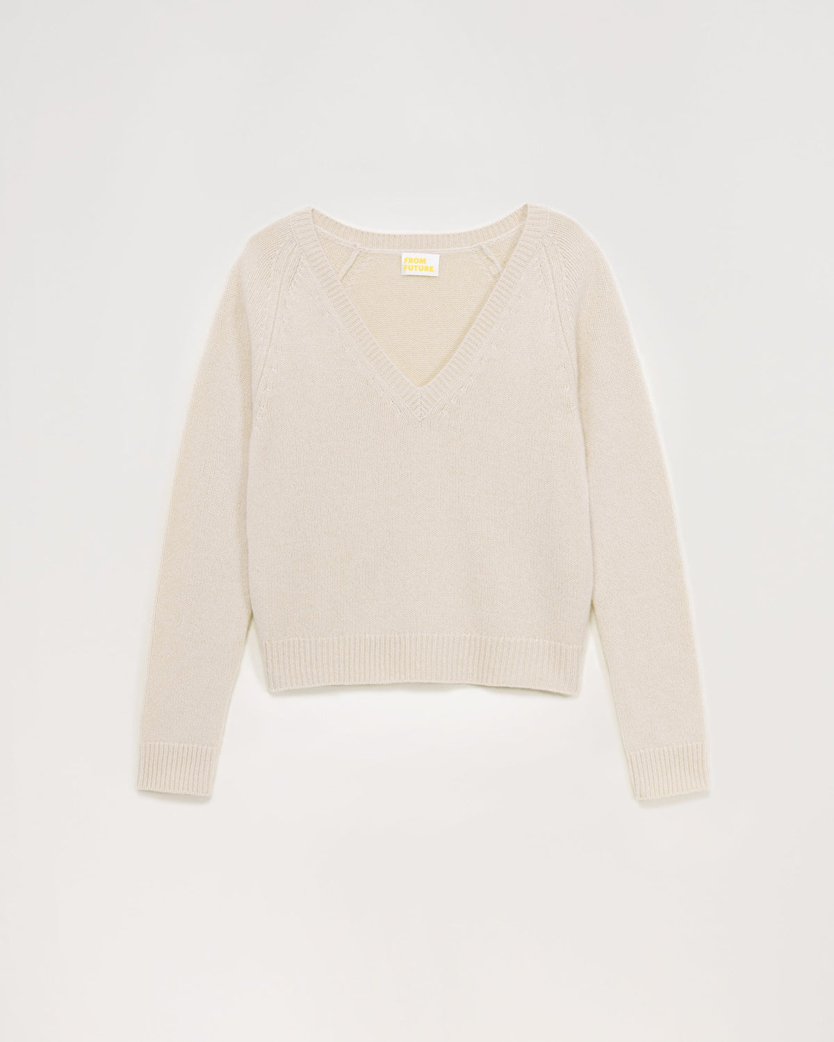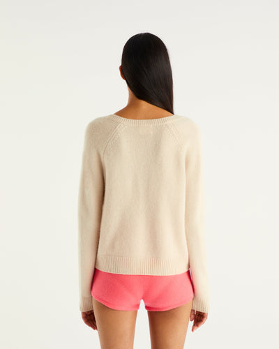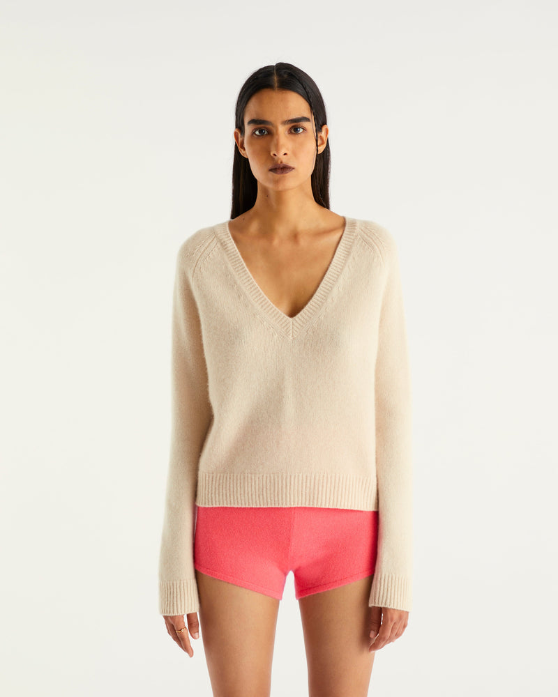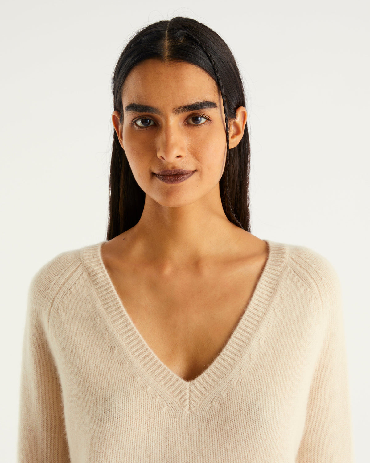 Sweater Col V Court 6 Fils - 100% Cachemire - Sable