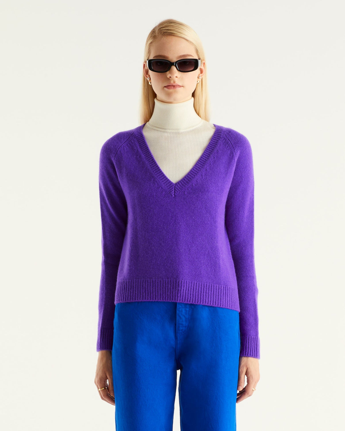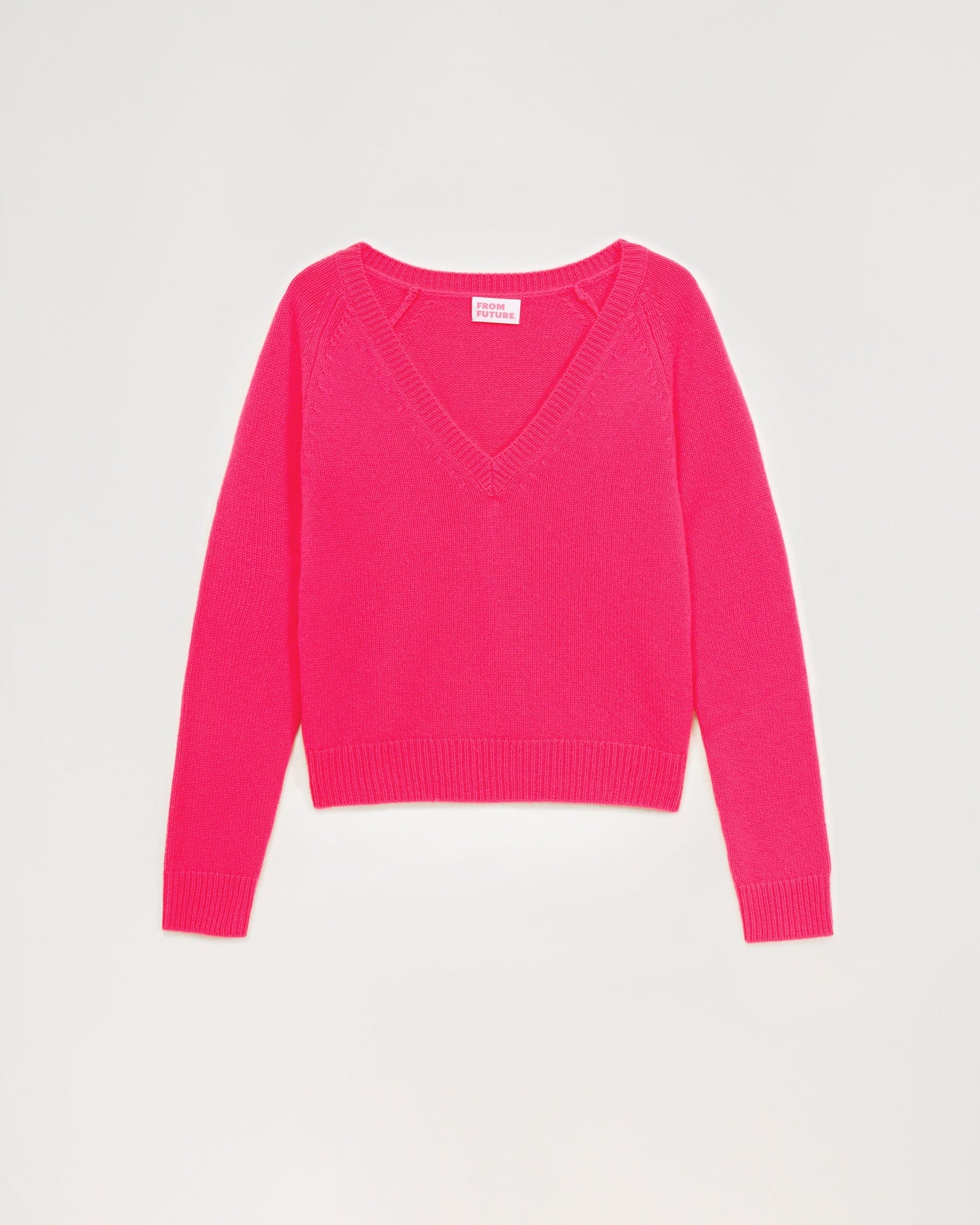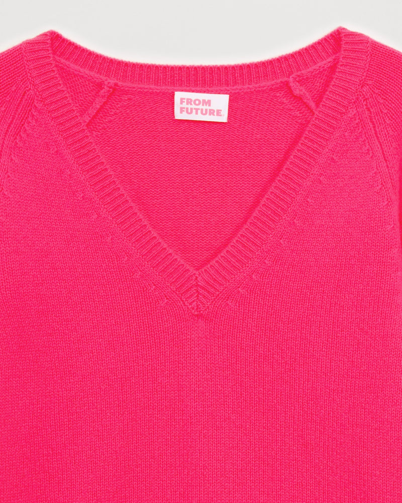 Sweater Col V Court 6 Fils - 100% Cachemire - Winter fuschia