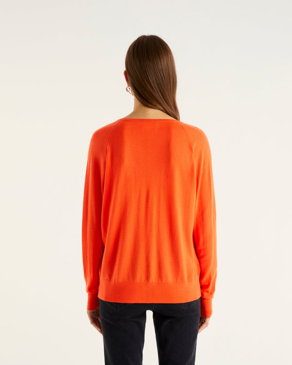 Sweater Col V Oversize Ice Wool - 100% Laine Mérinos - Neon orange