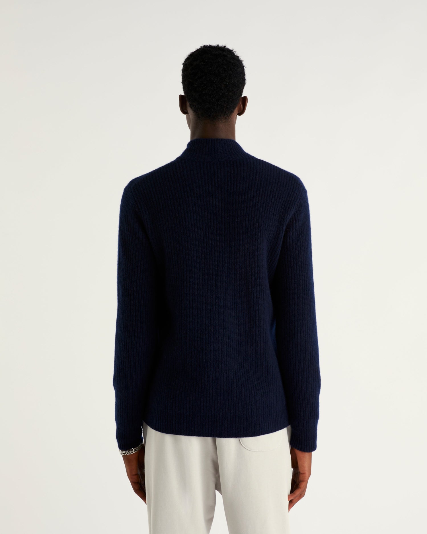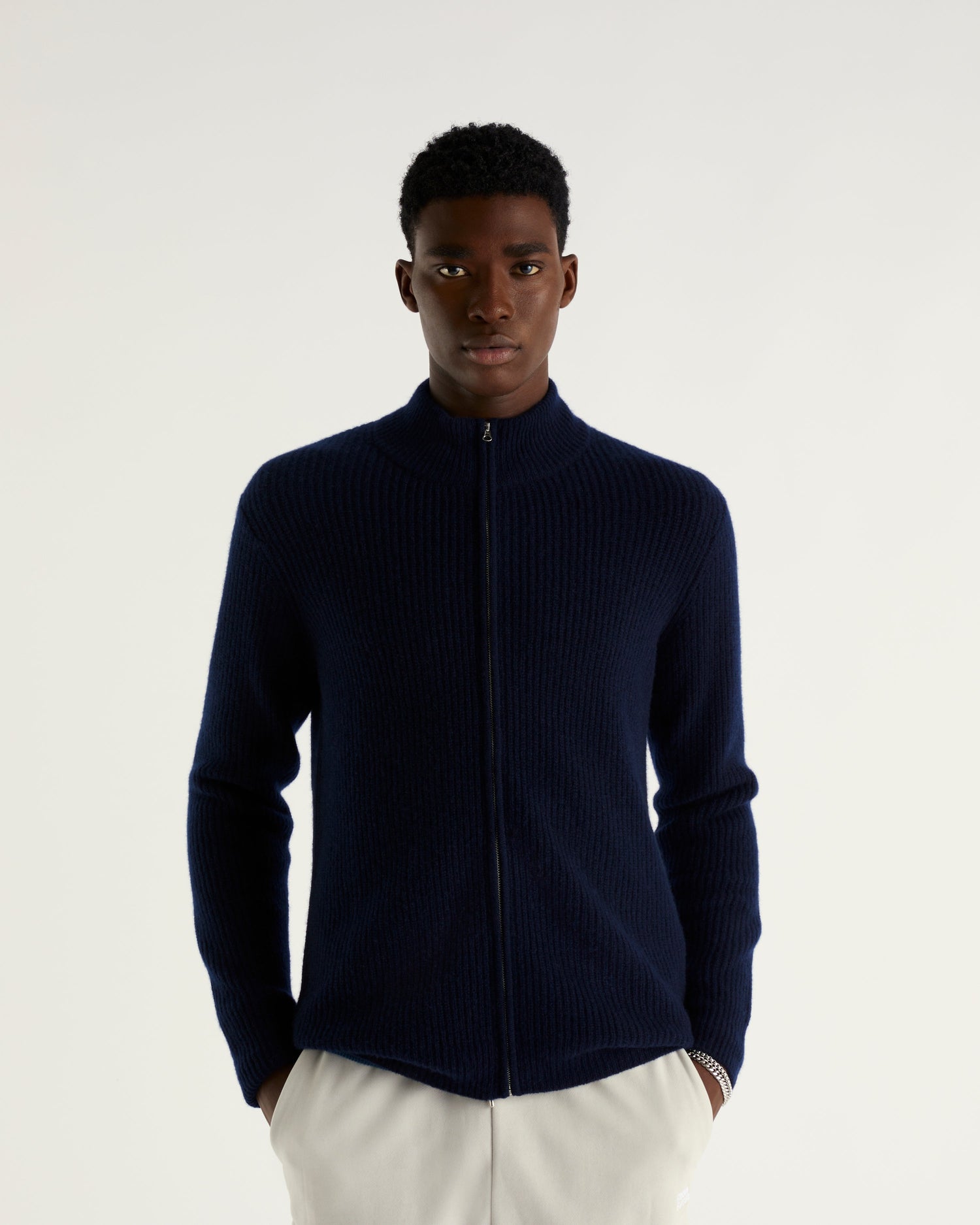 Gilet Zippé À Côtes 4 Fils - 100% Cachemire - Navy