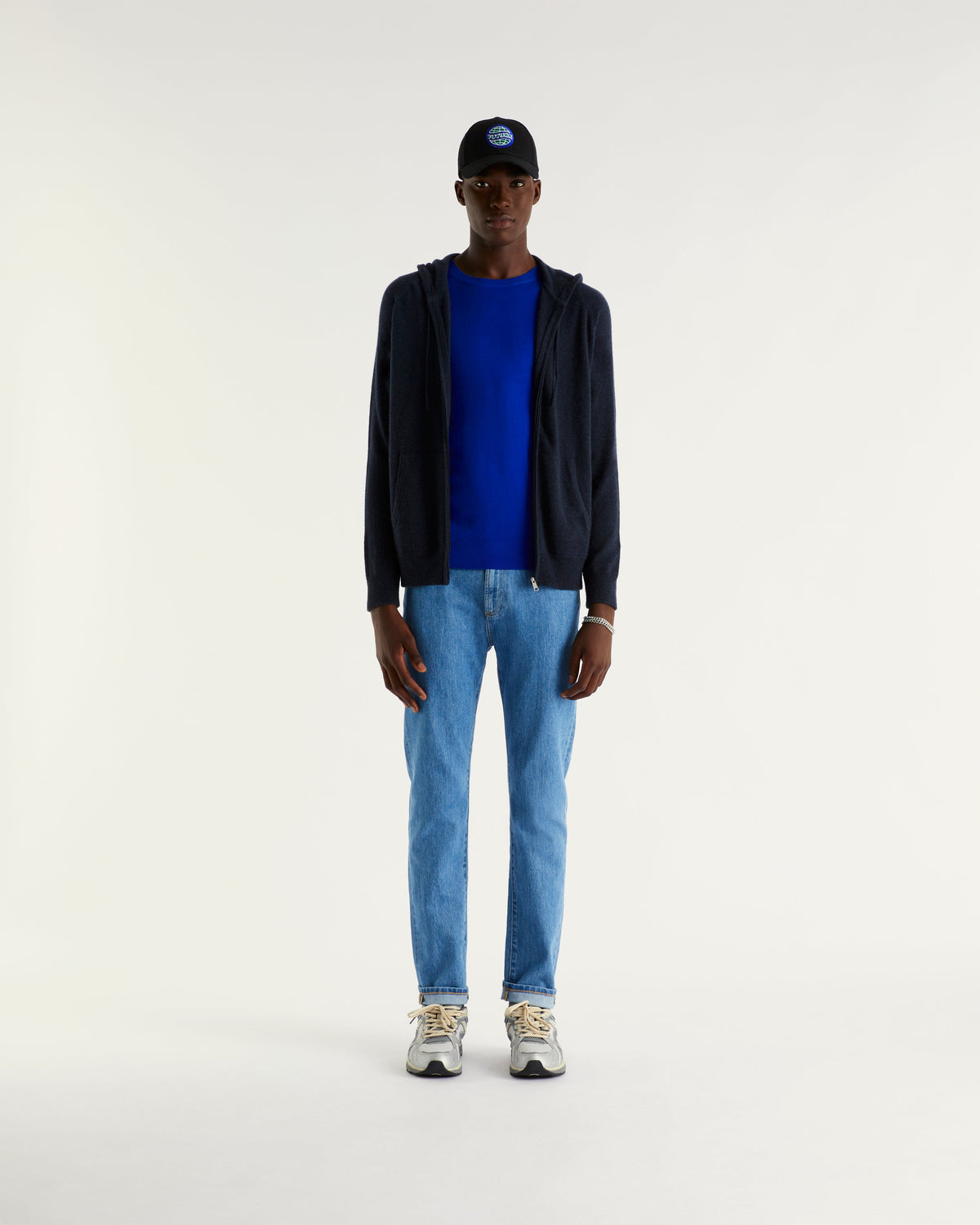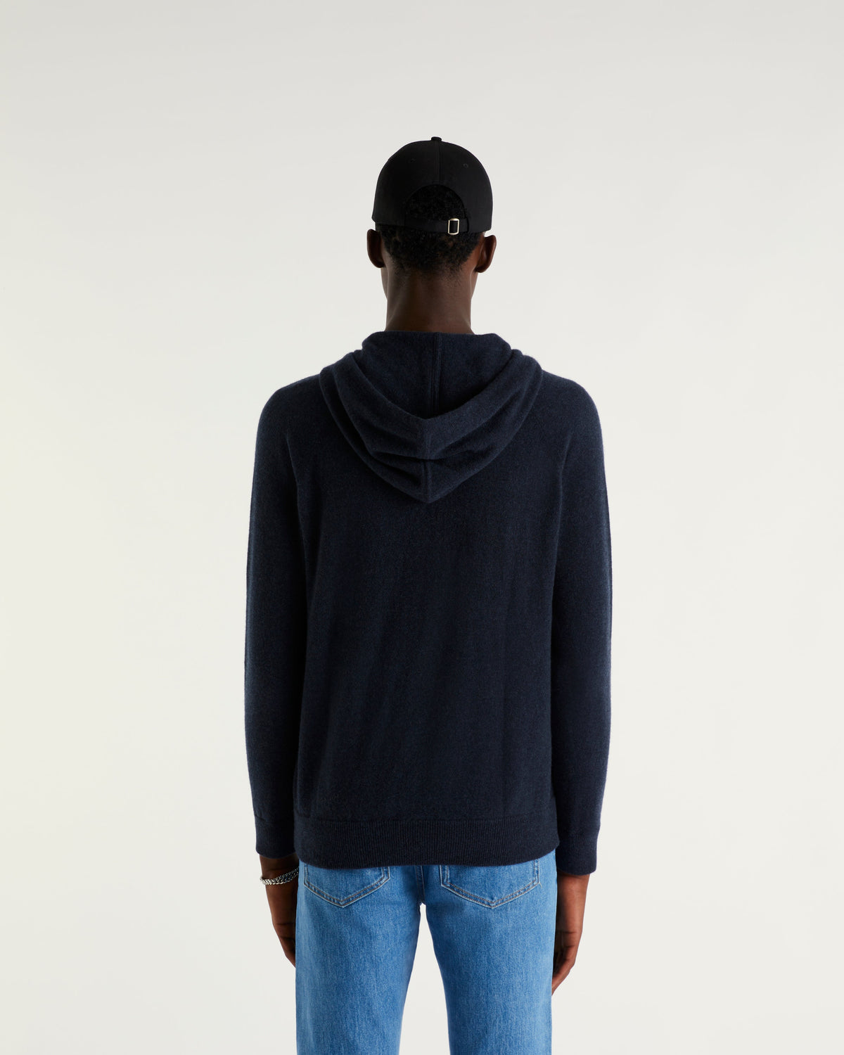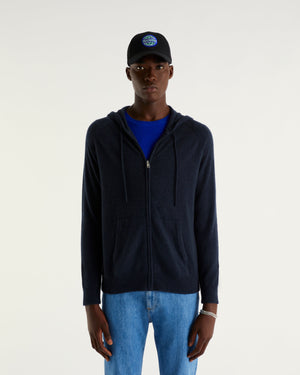 Hoodie Zippé 2 Fils - 100% Cachemire - Bleu chine