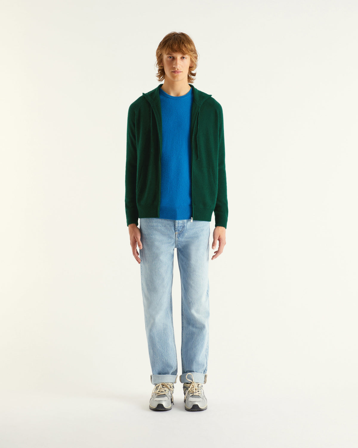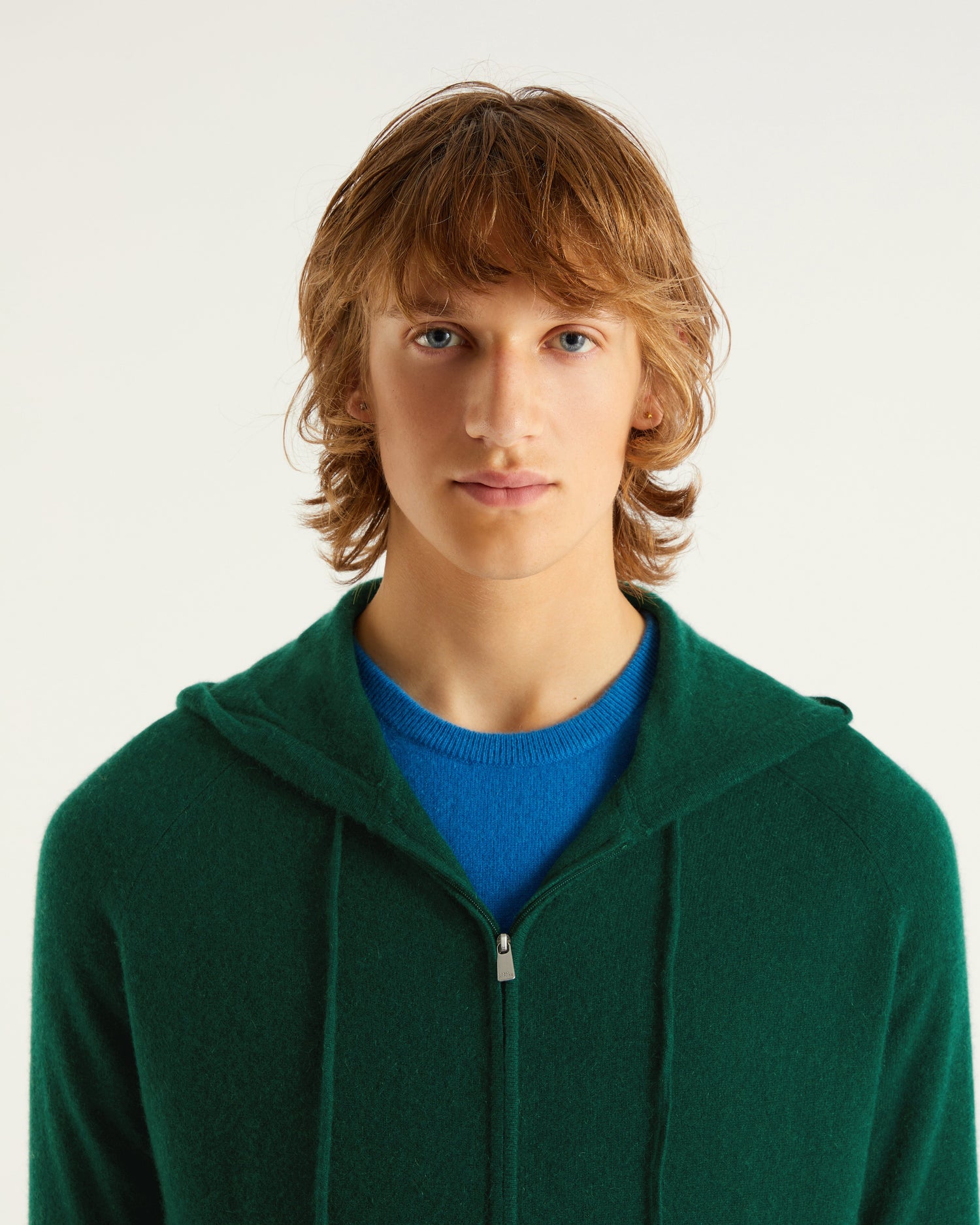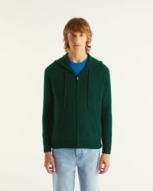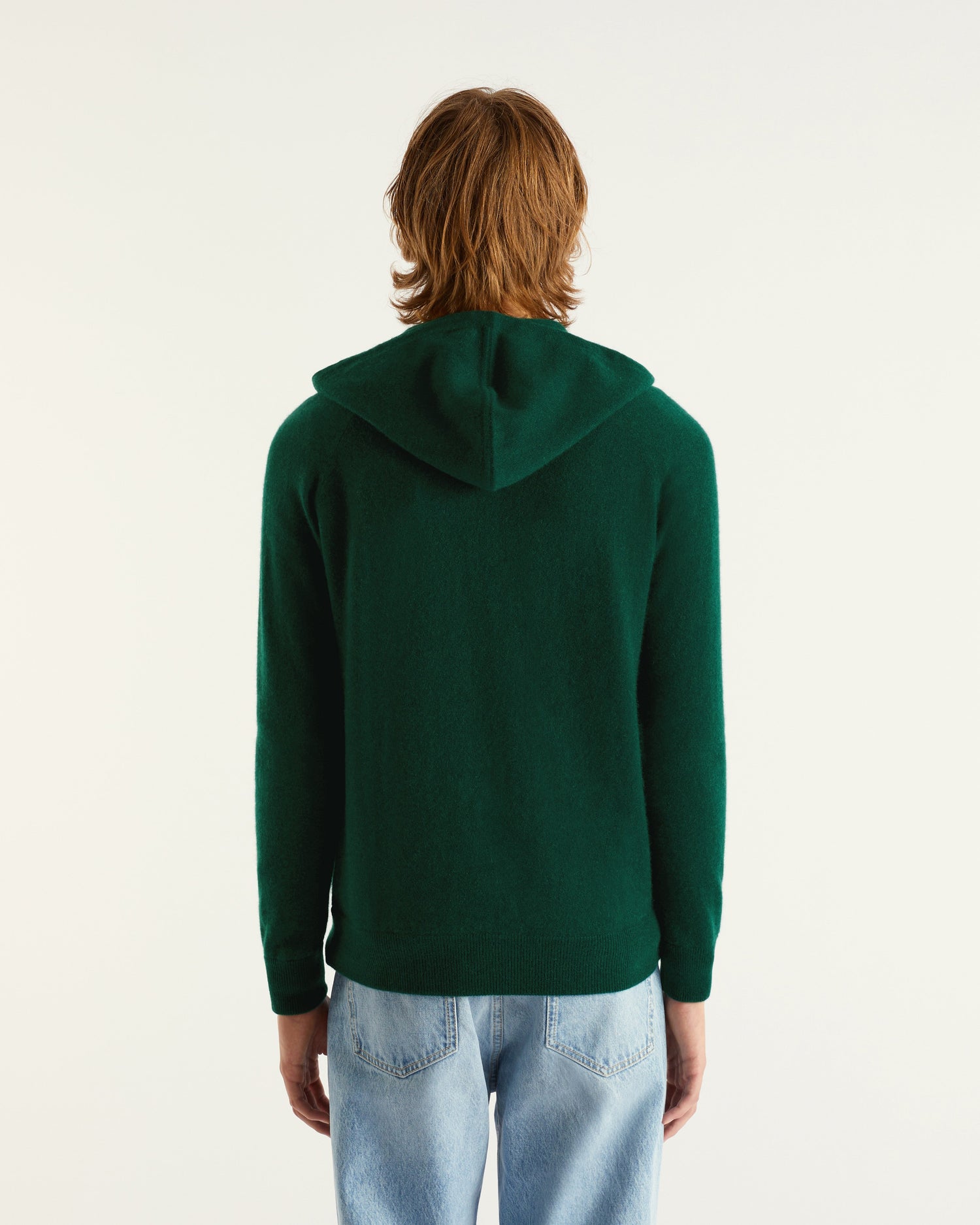 Hoodie Zippé 2 Fils - 100% Cachemire - Bottle green