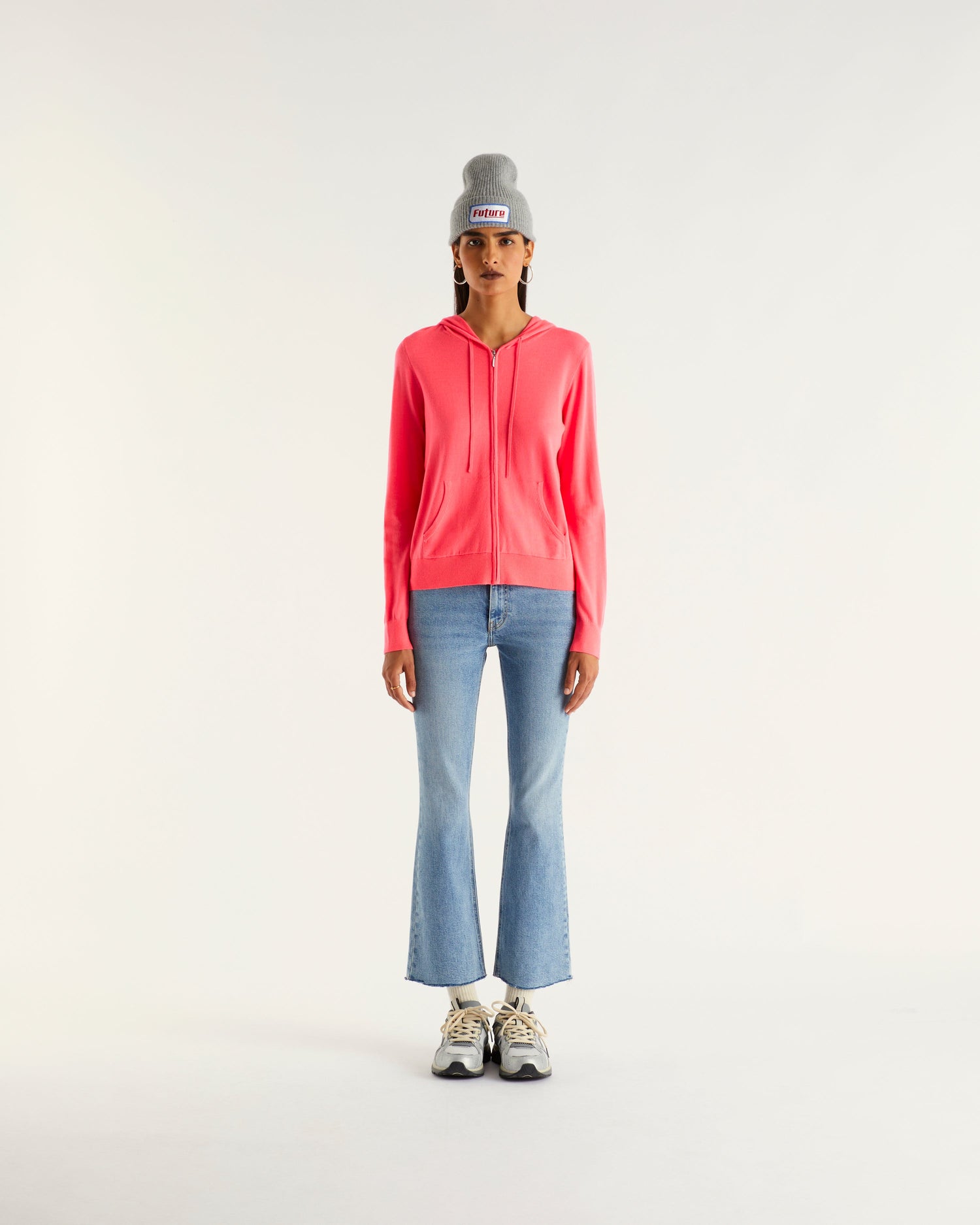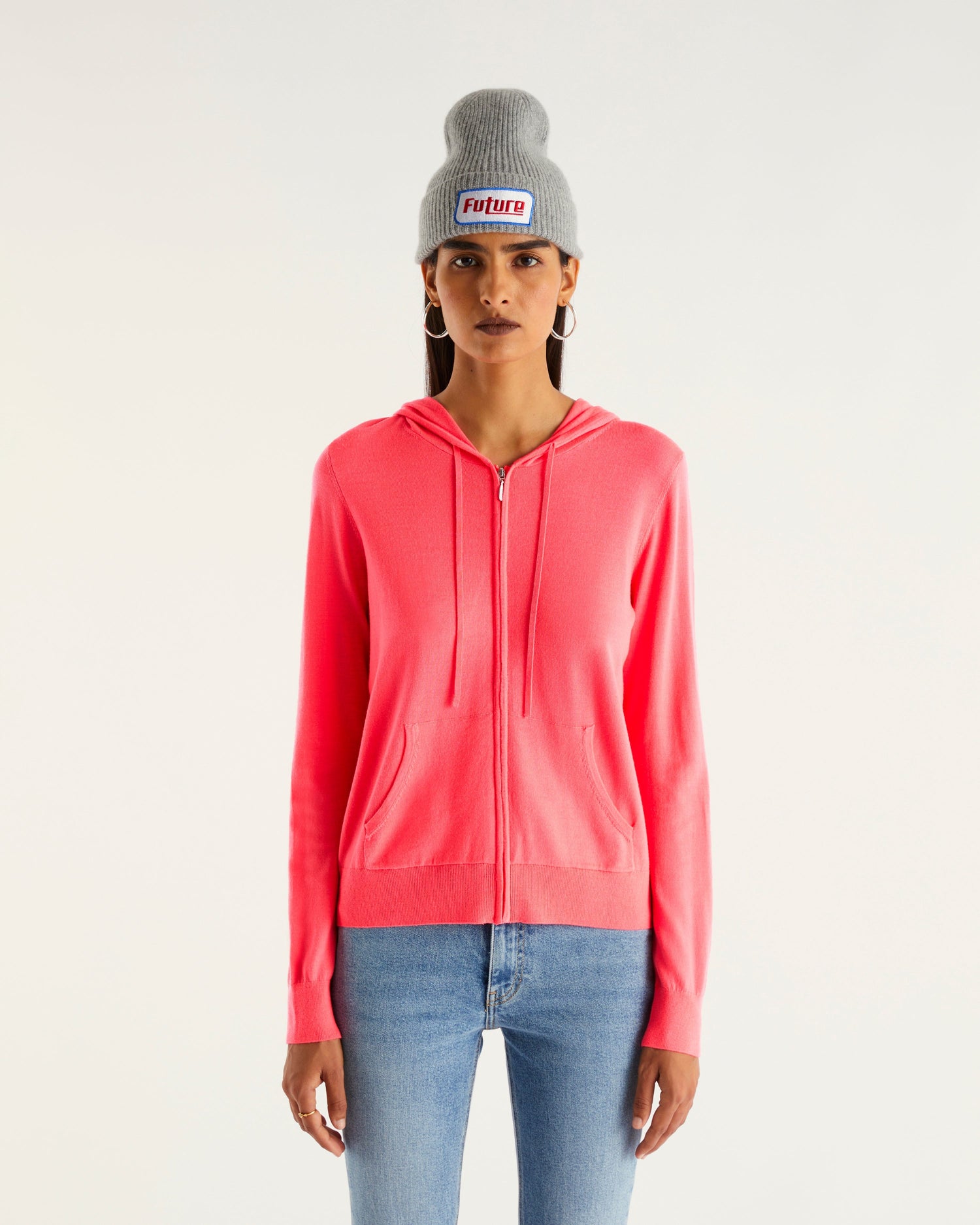 Hoodie Zippé Ice Wool - 100% Laine Mérinos - Neon pink