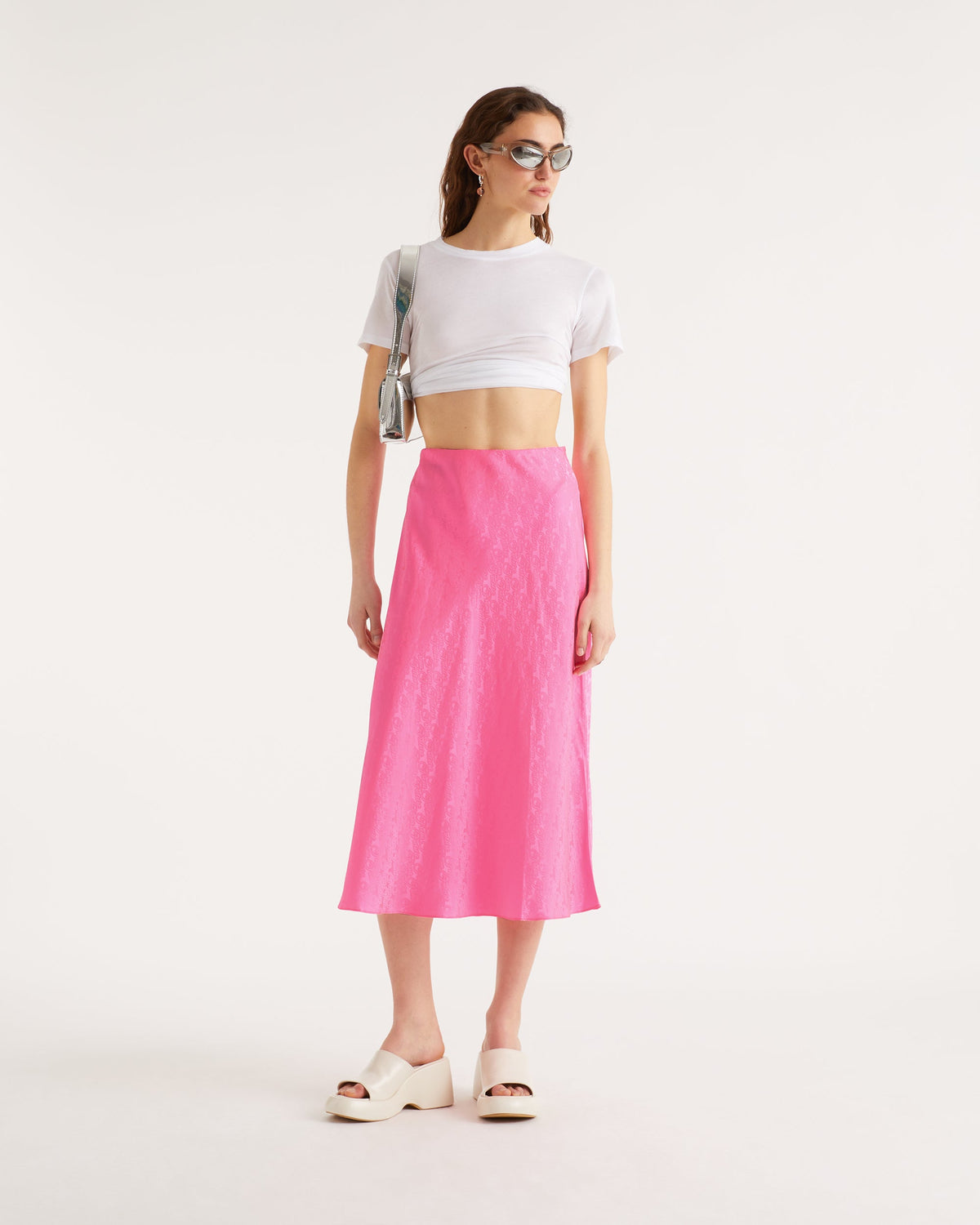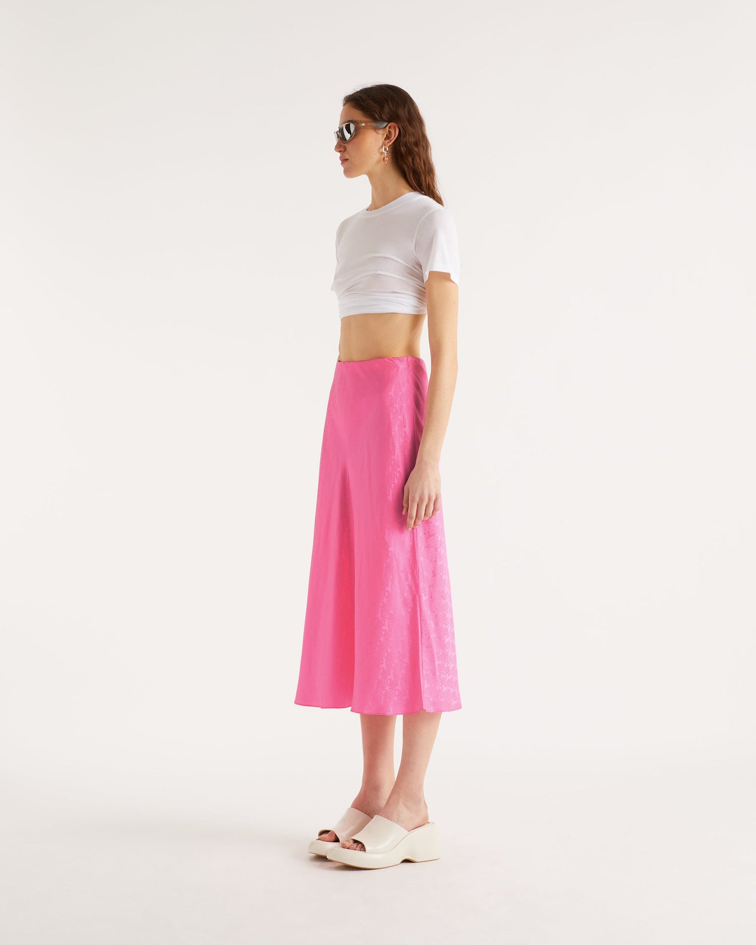 Jupe Mi Longue Carmen - Soie - Jacquard rose