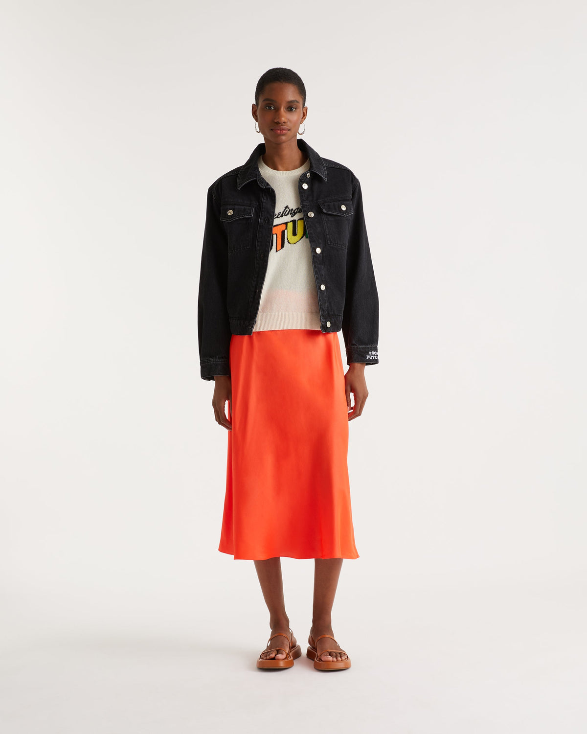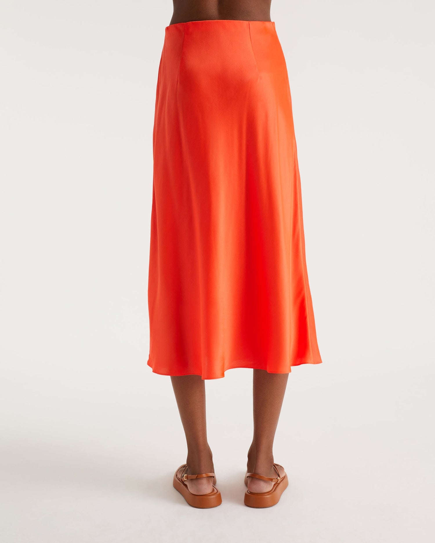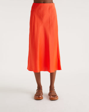 Jupe Mi Longue Carmen - Soie - Neon orange