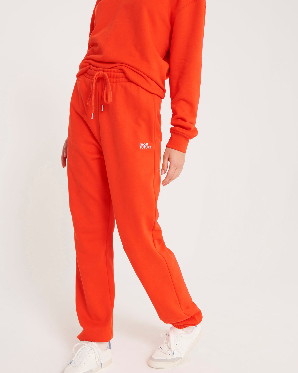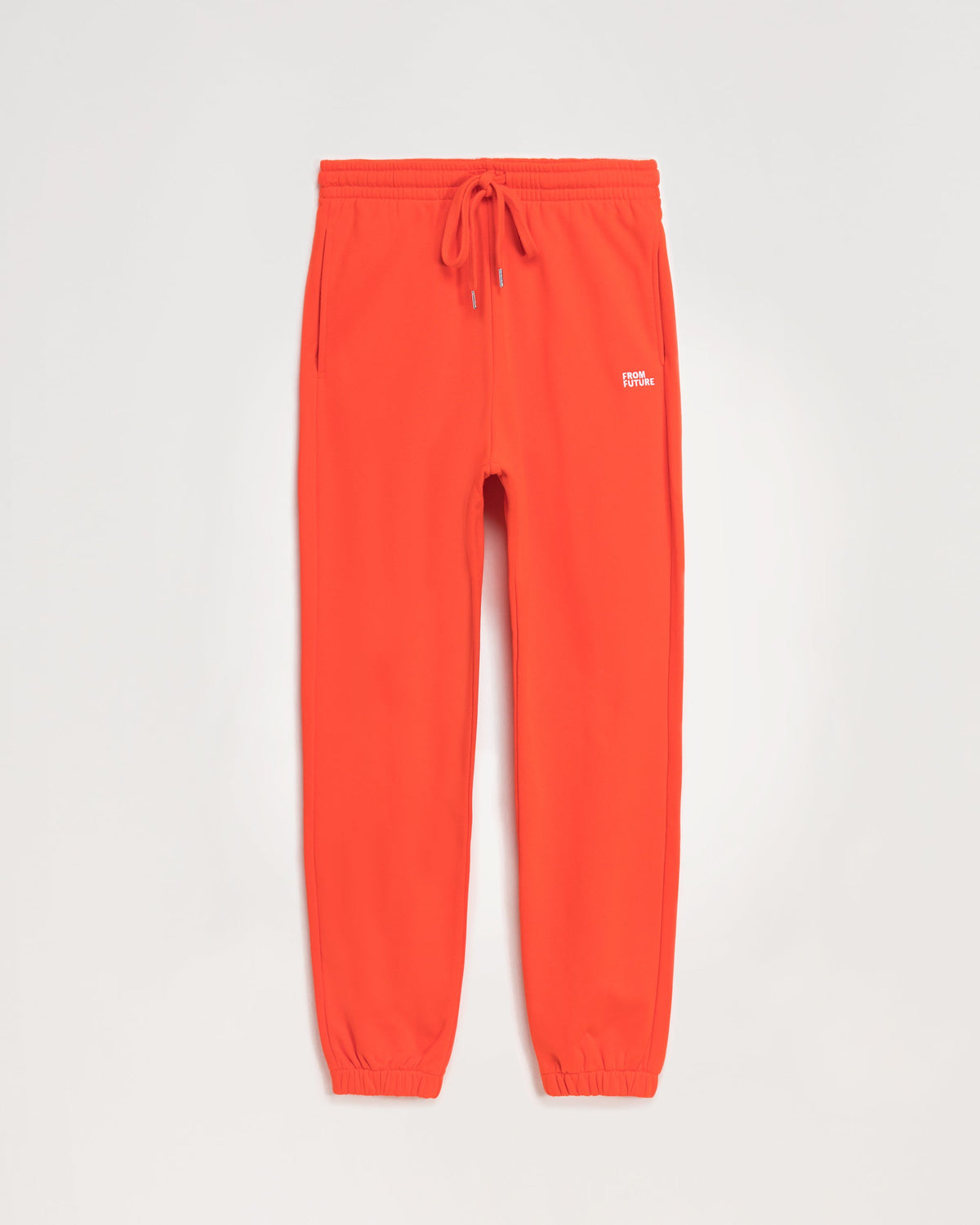 Pantalon Jogging Broderie FROM FUTURE - 100% Coton Organique - Orange Fluo