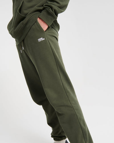 Pantalon Jogging Broderie FROM FUTURE - 100% Coton - Kaki