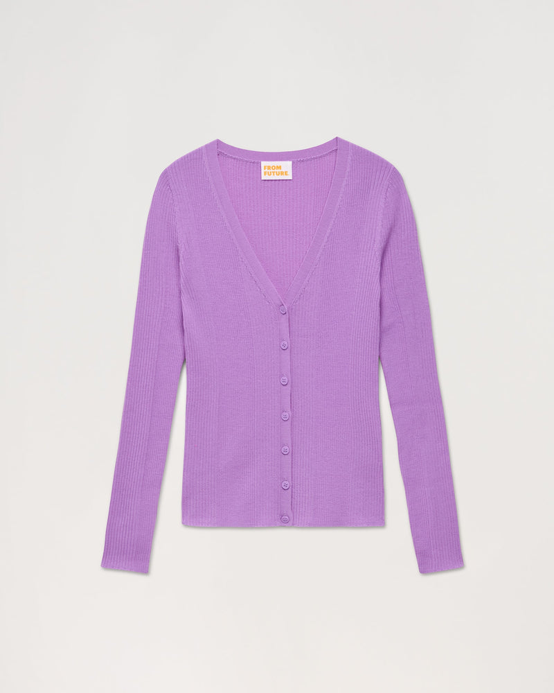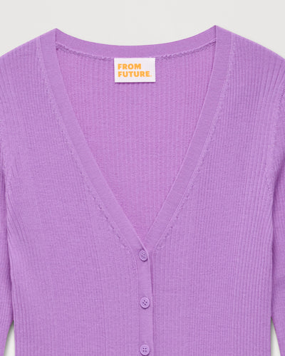 Pull Cardigan A Cotes - Laine Mérinos - Holiday lilac