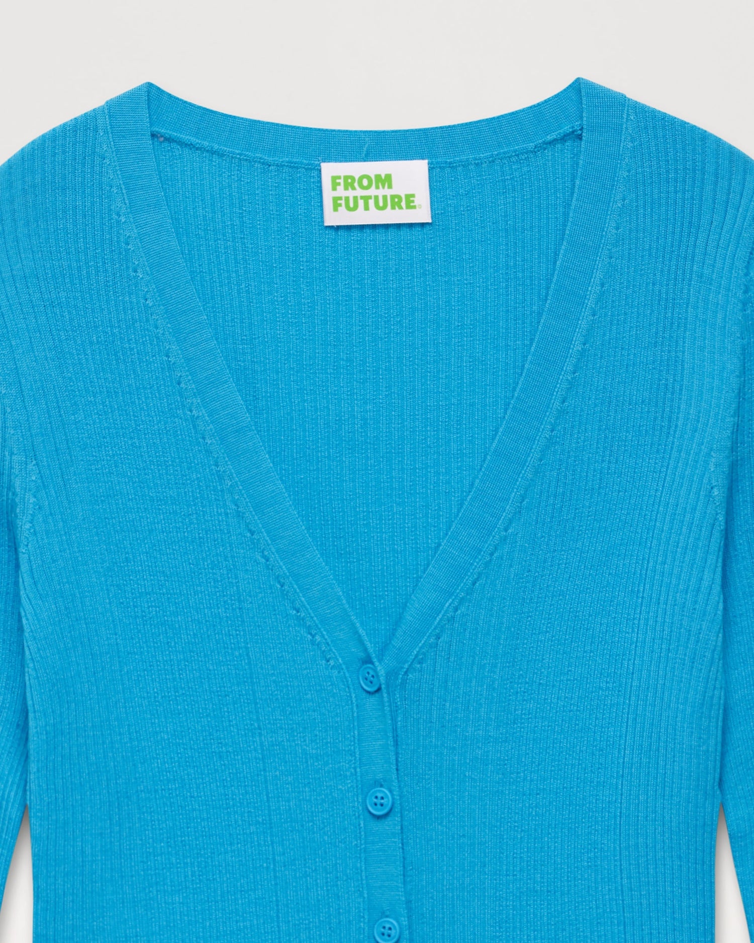 Pull Cardigan A Cotes - Laine Mérinos - Water blue