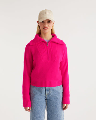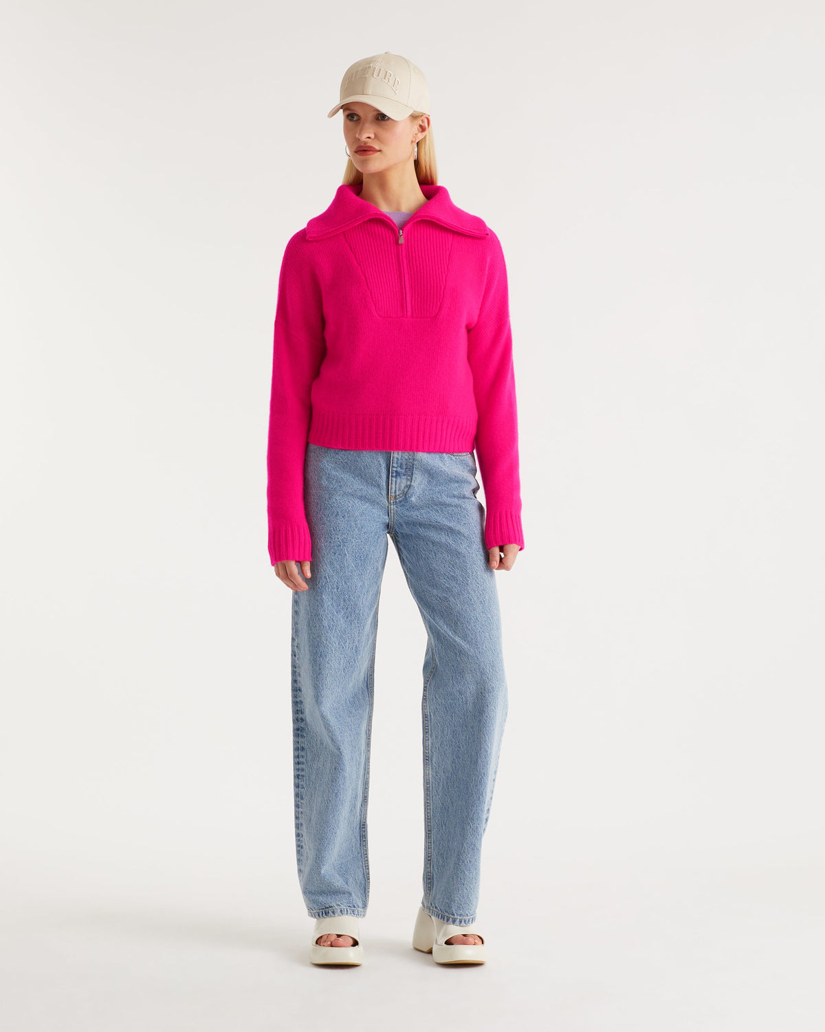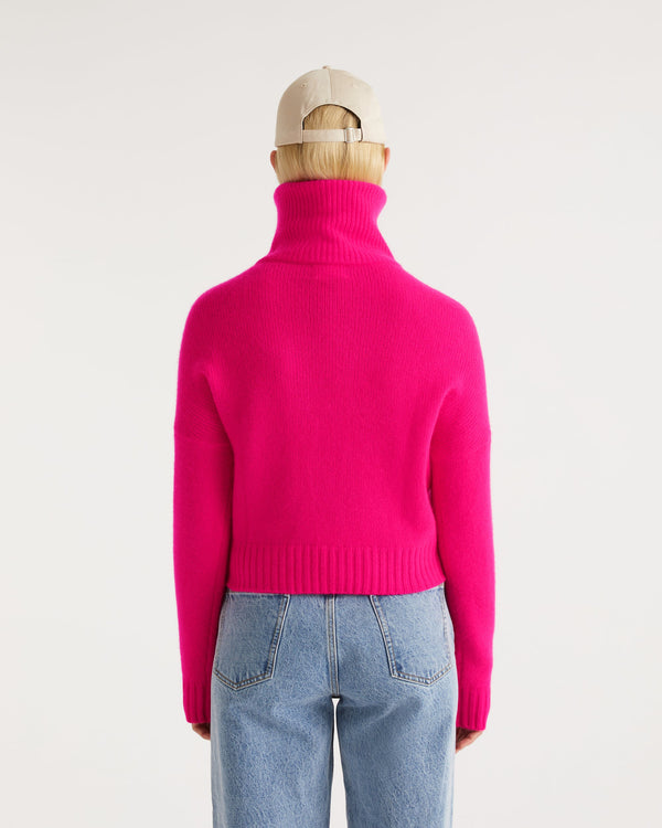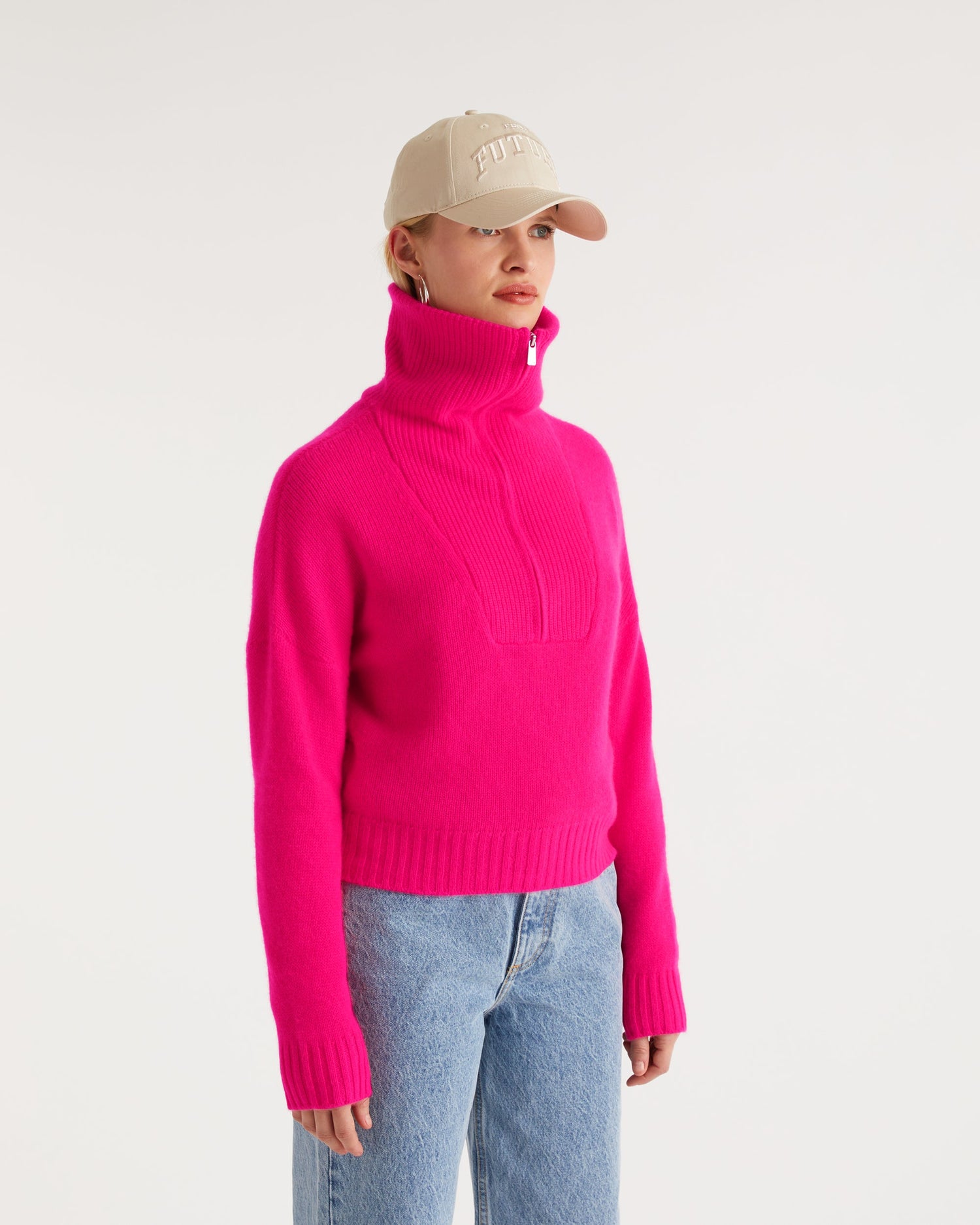 Sweater Pull Col Camionneur Zippe Oversize Court - Cachemire - Beach pink