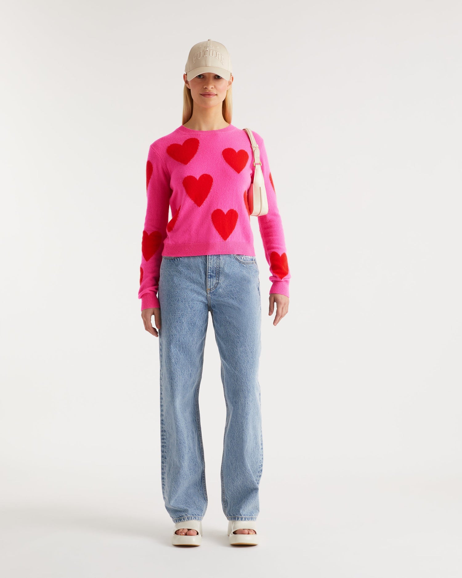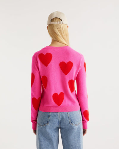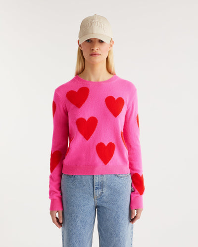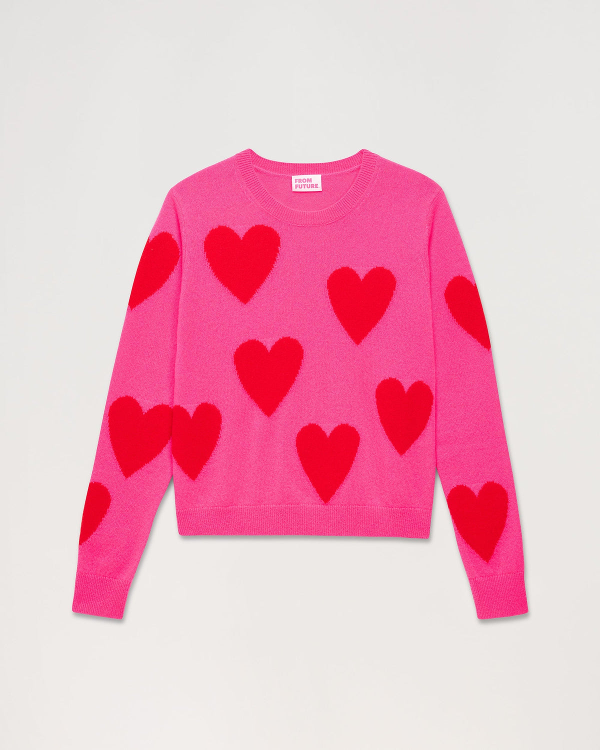 Sweater Pull Col Rond Coeur All-Over Light - Cachemire - Rose fluo