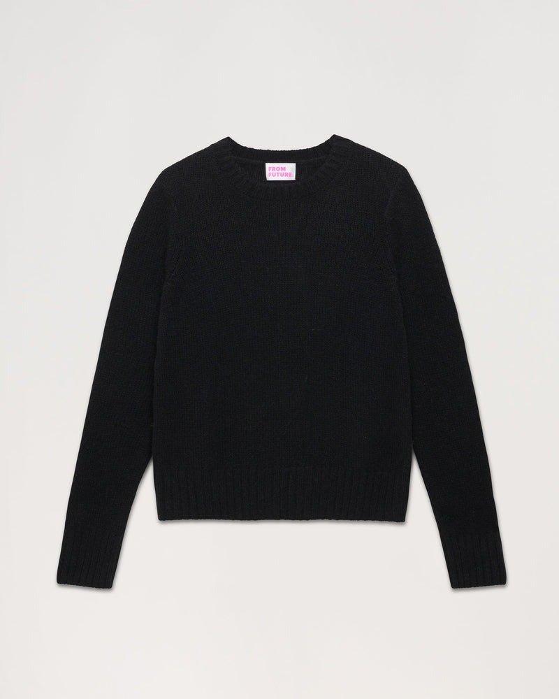 Sweater Pull Col Rond Court - Cachemire - Noir