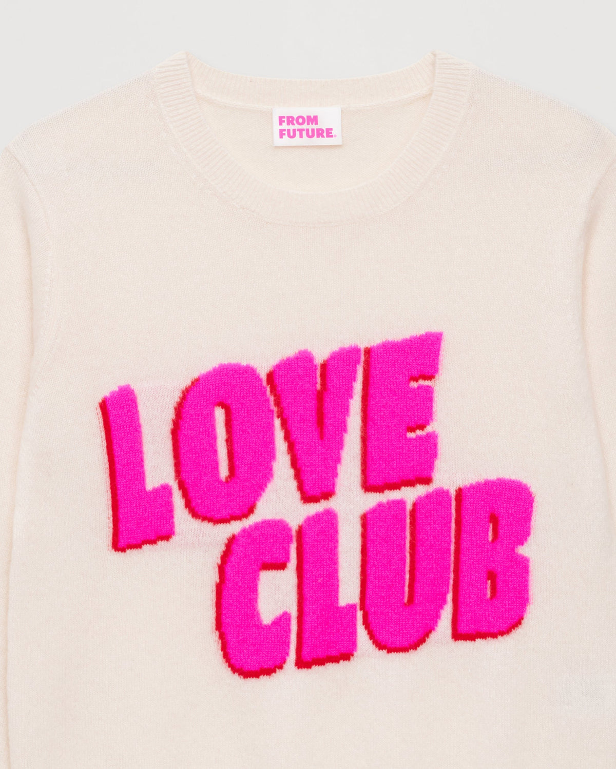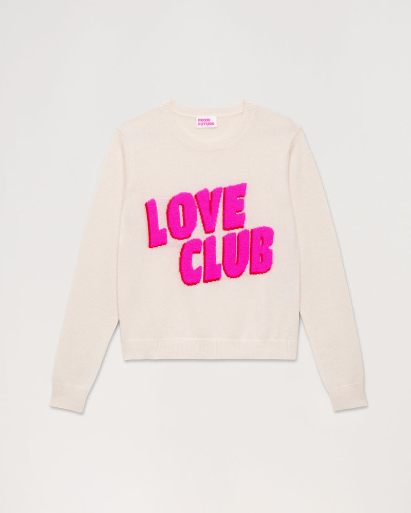 Sweater Pull Col Rond Love Club Light - Cachemire - Ecru