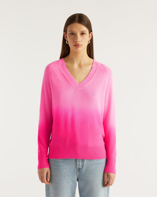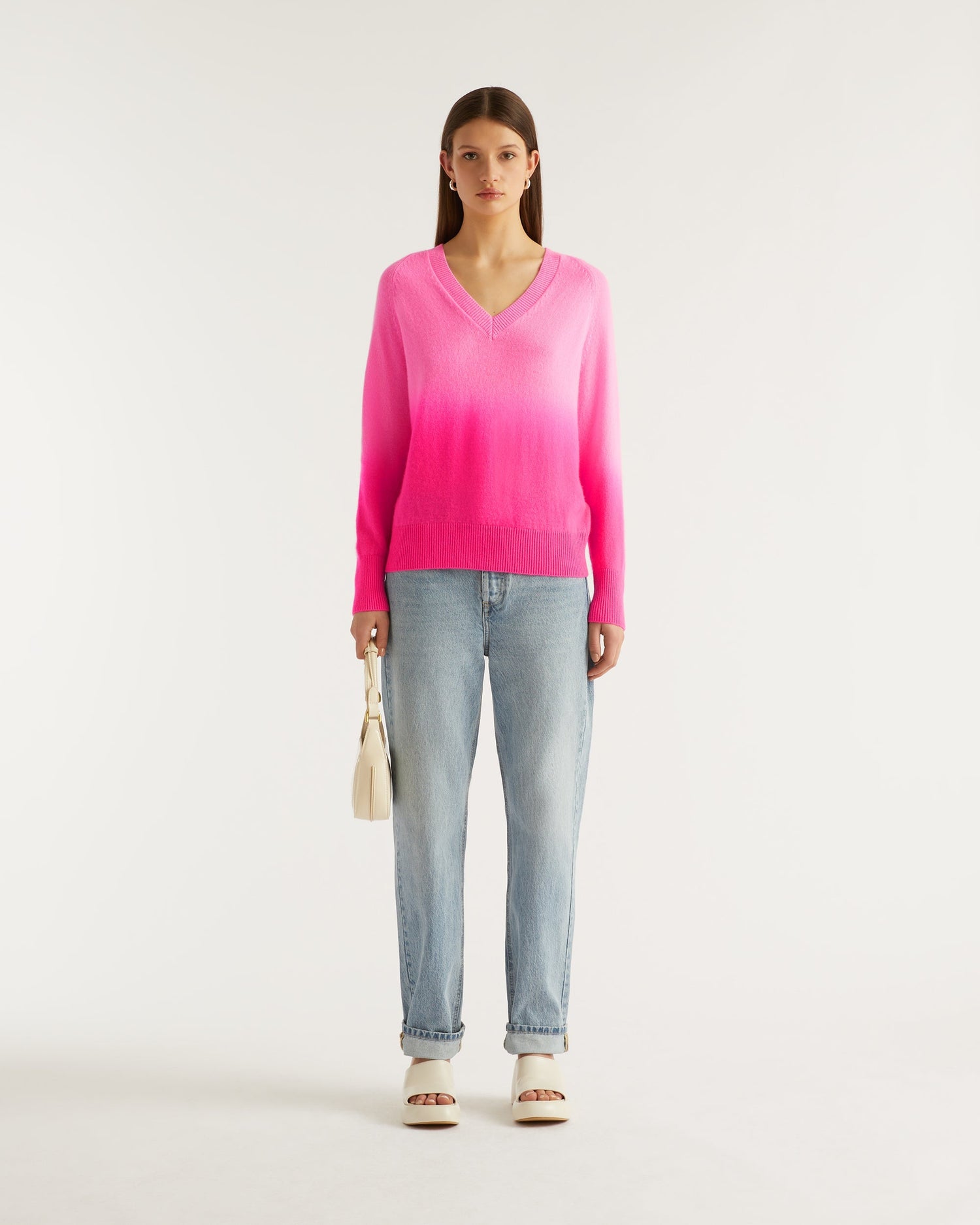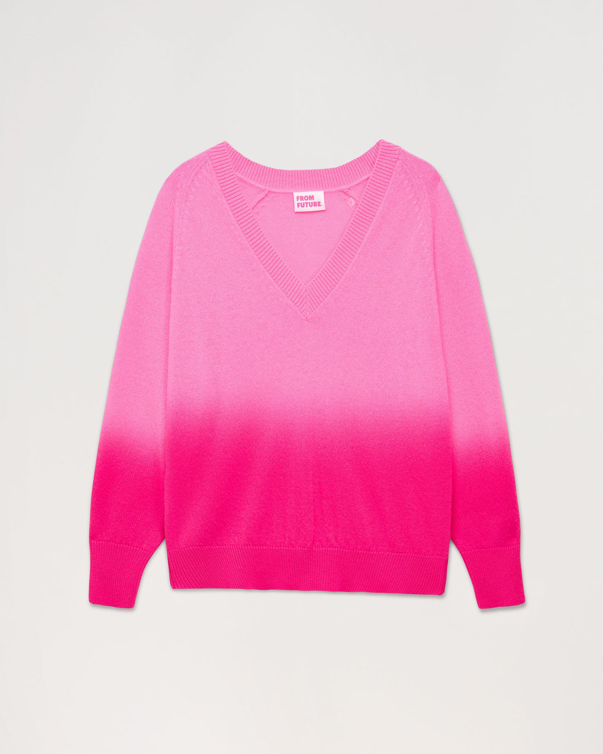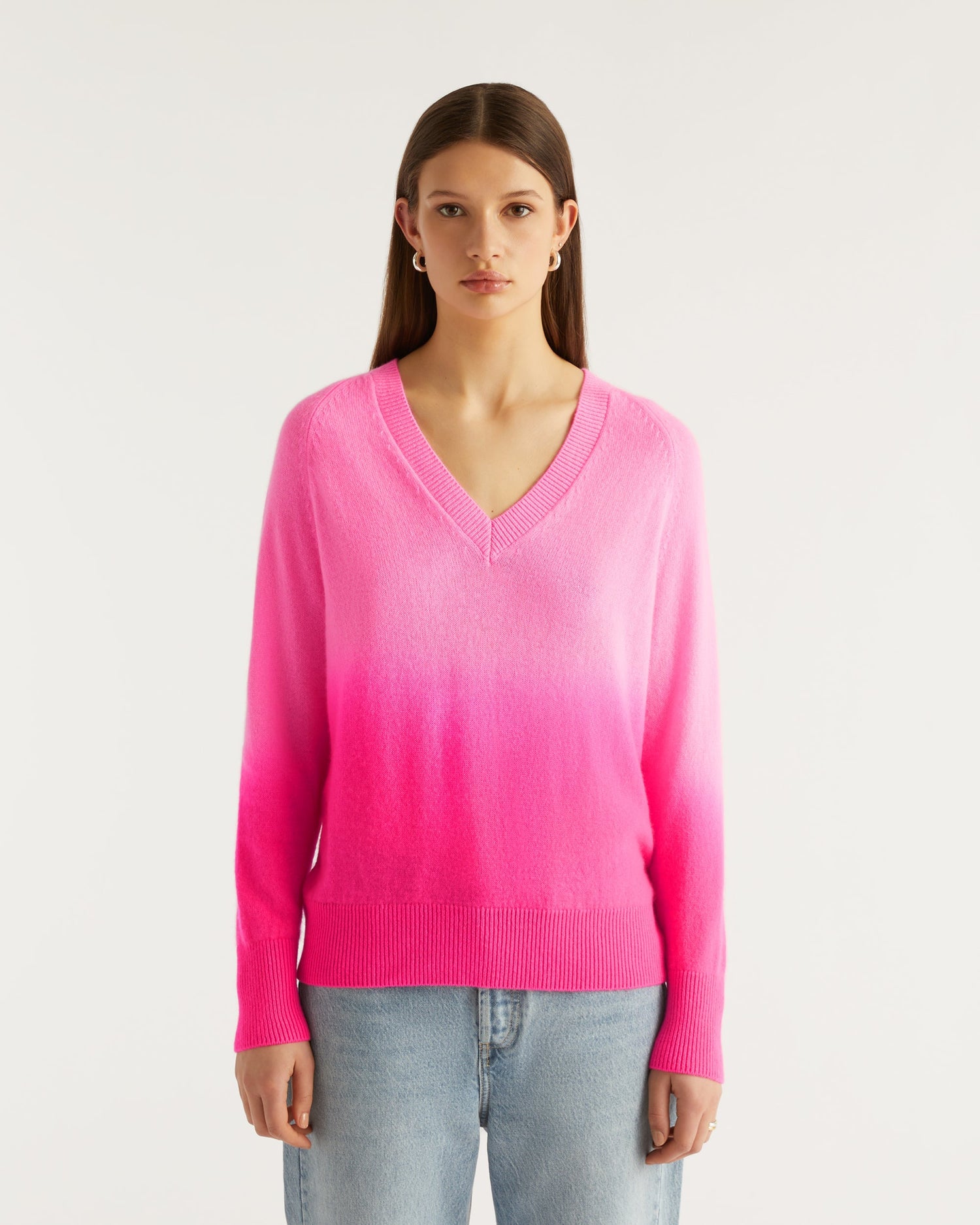 Sweater Pull Col V Dip Dye Light - Cachemire - Dd rose