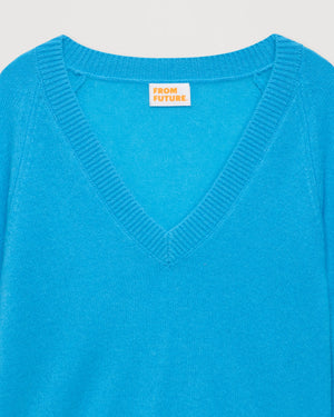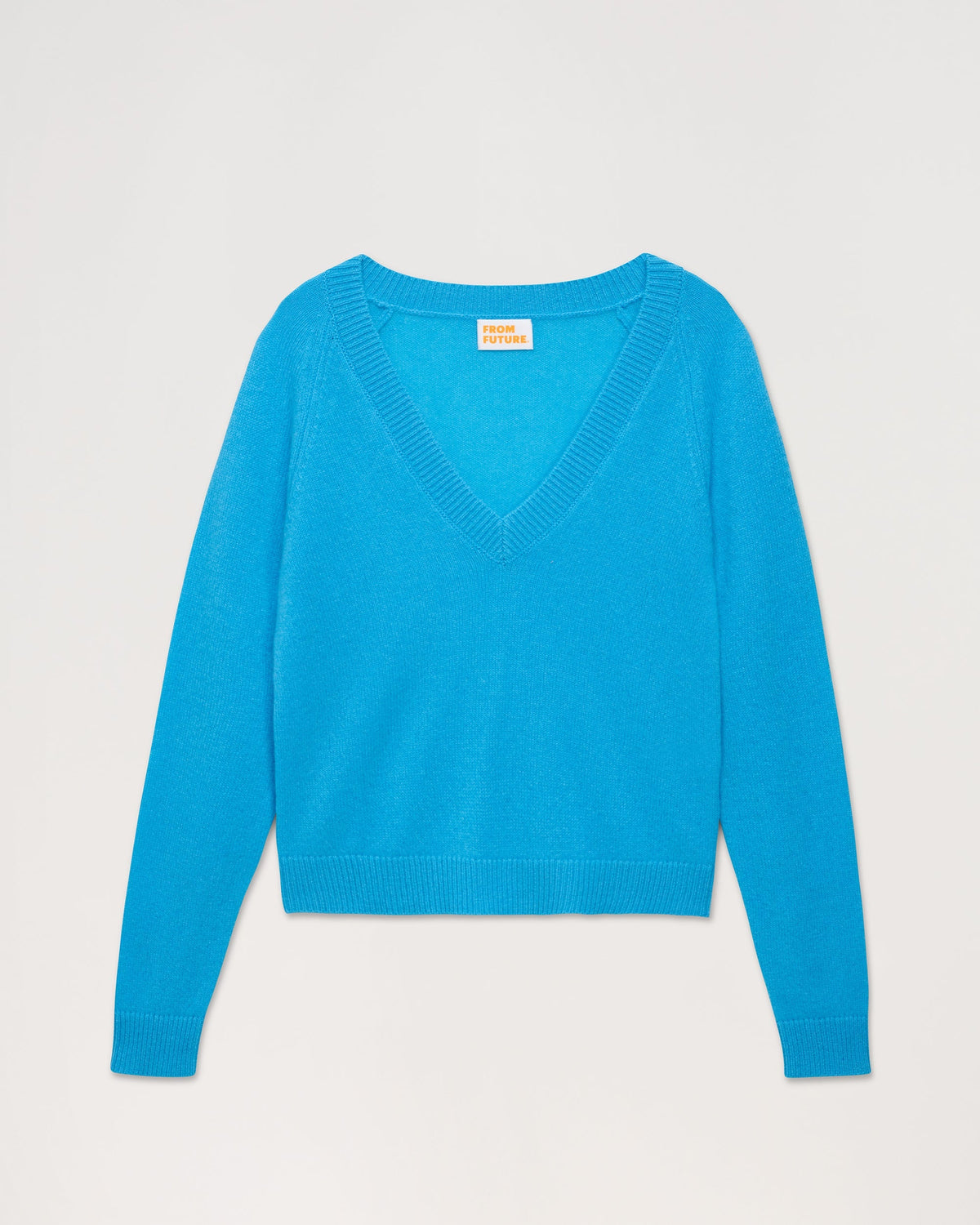 Sweater Pull Col V Manches Raglan Light - Cachemire - Water blue