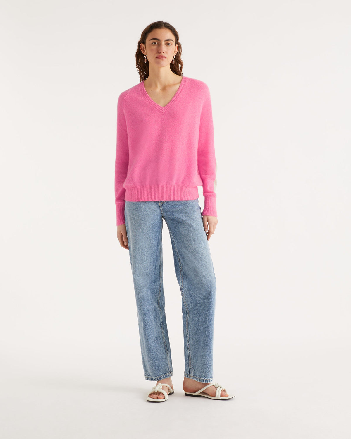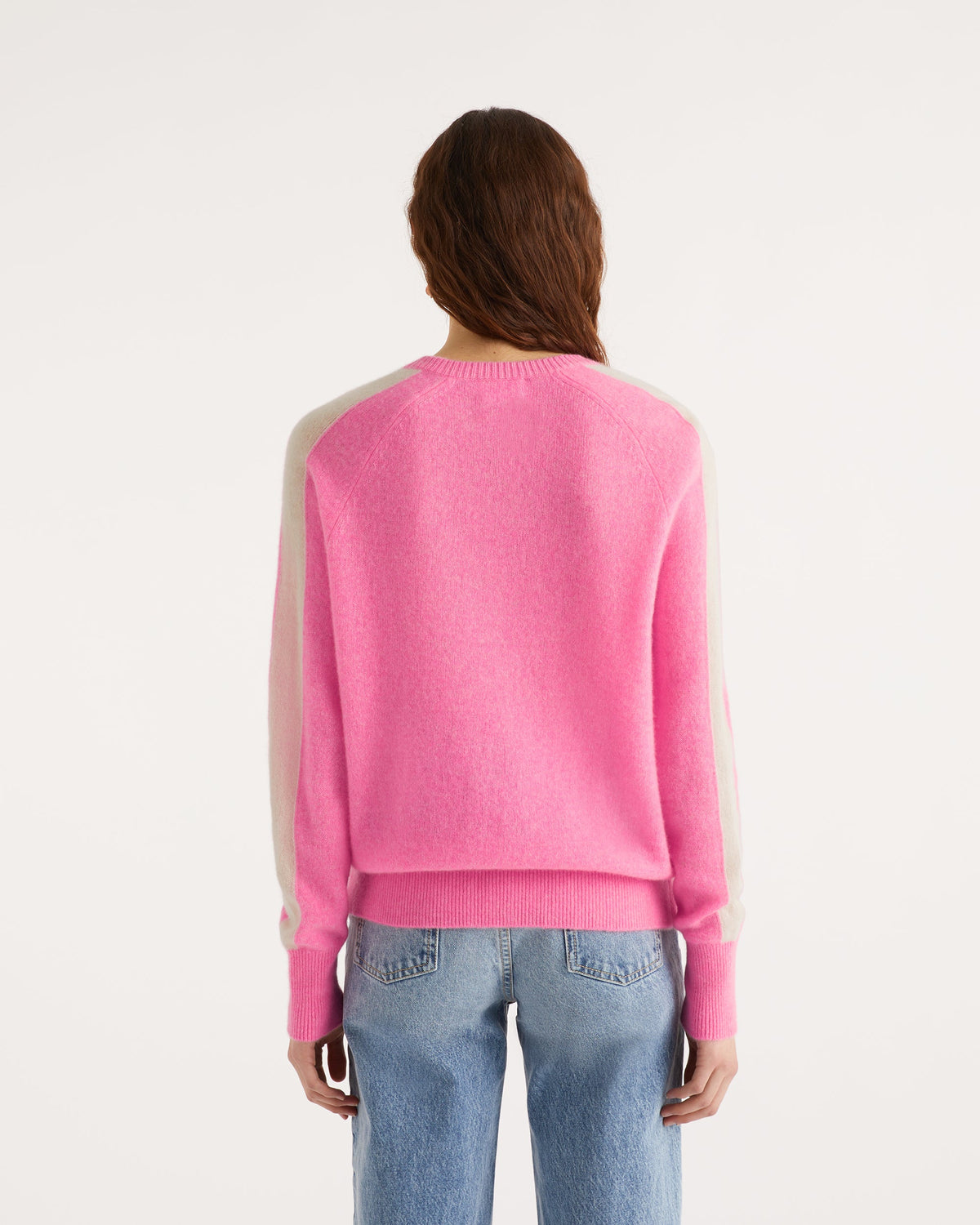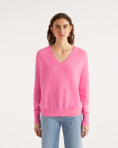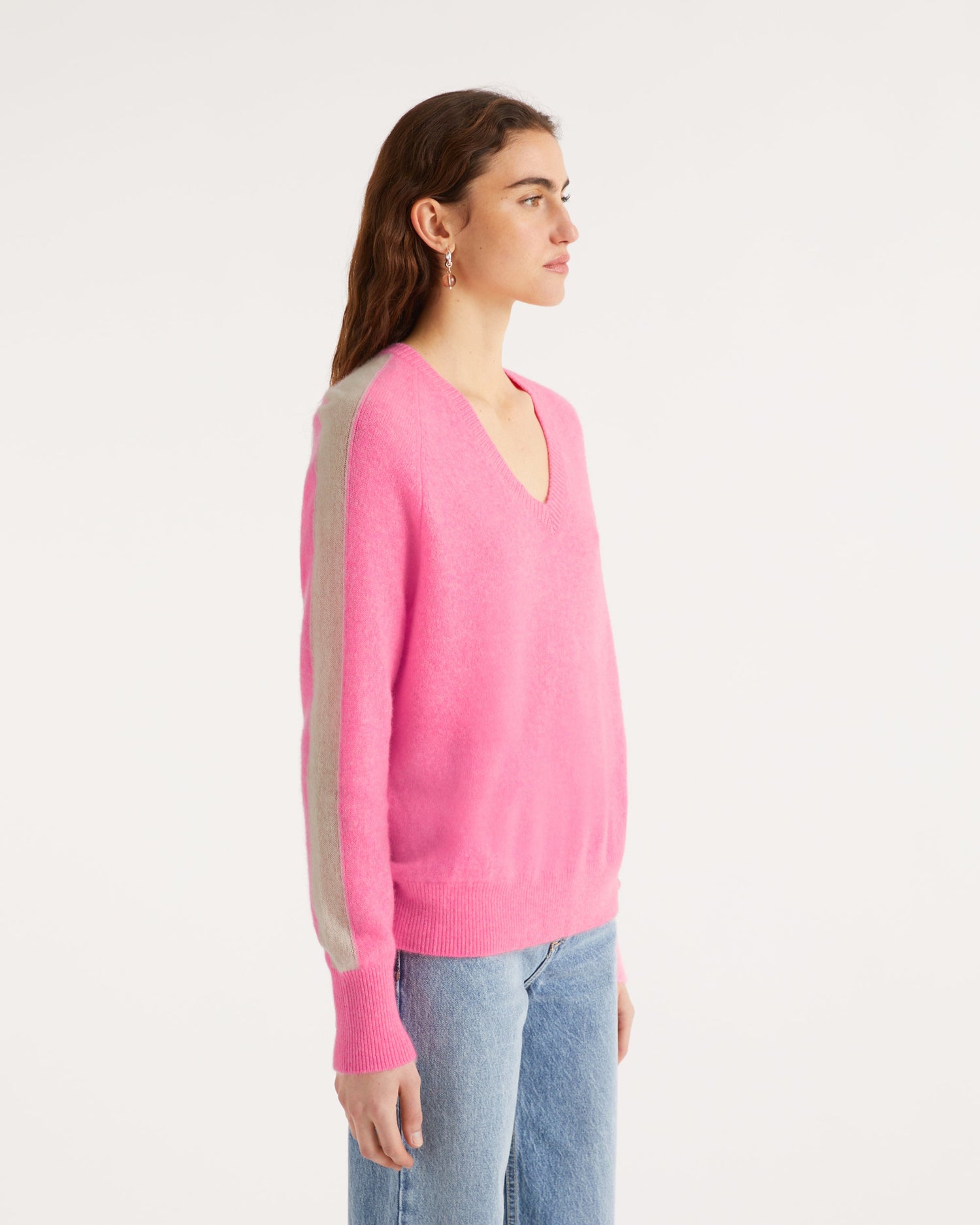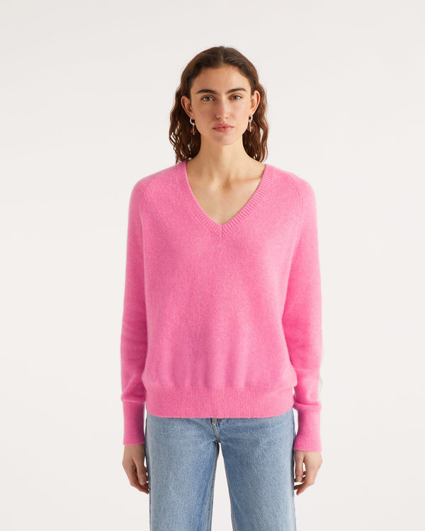 Sweater Pull Col V Oversize Bande Manches Light - Cachemire - Sunset pink