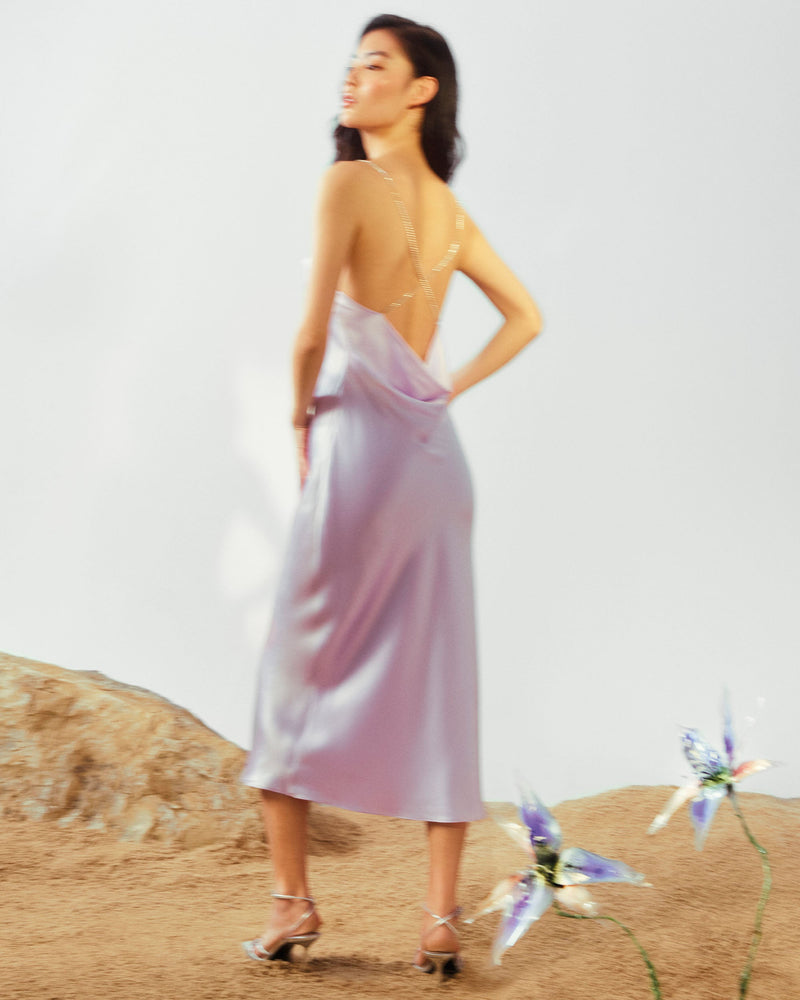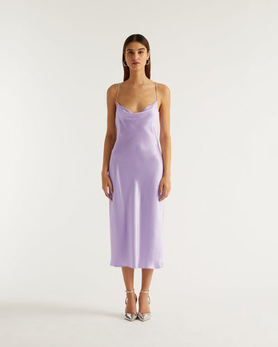 Robe Longue Bretelle Naomi - Soie - Lilas
