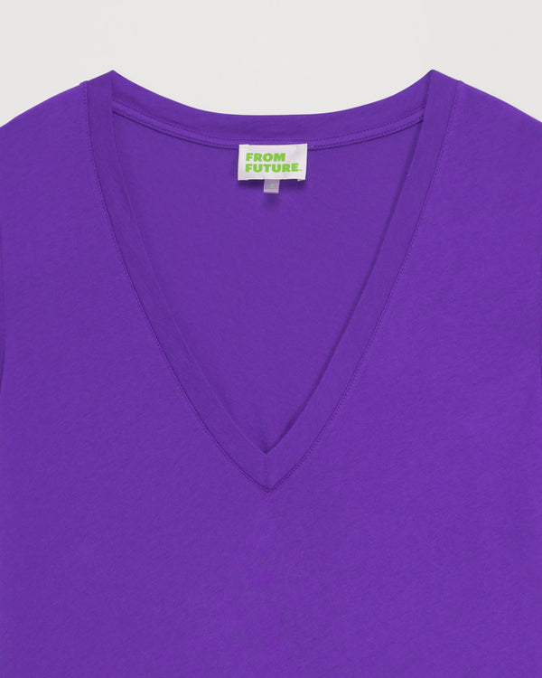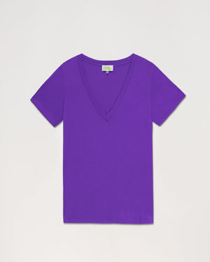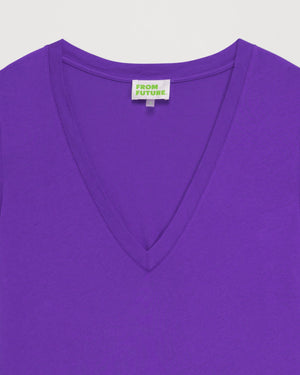 Sweater T-Shirt Col V Supima - Coton - Violet fluo