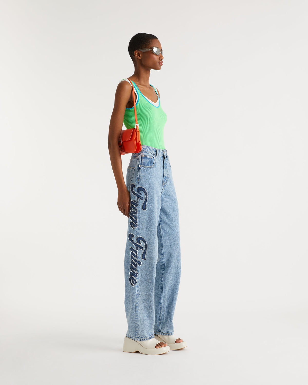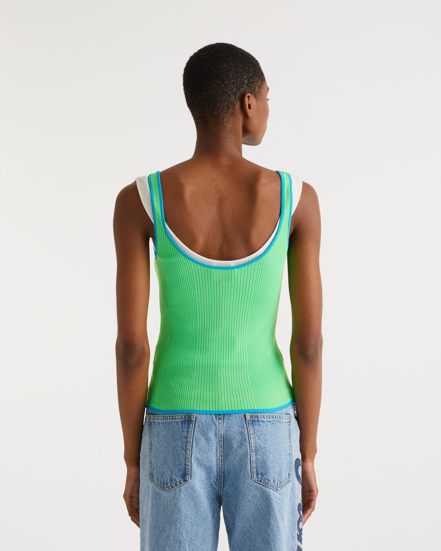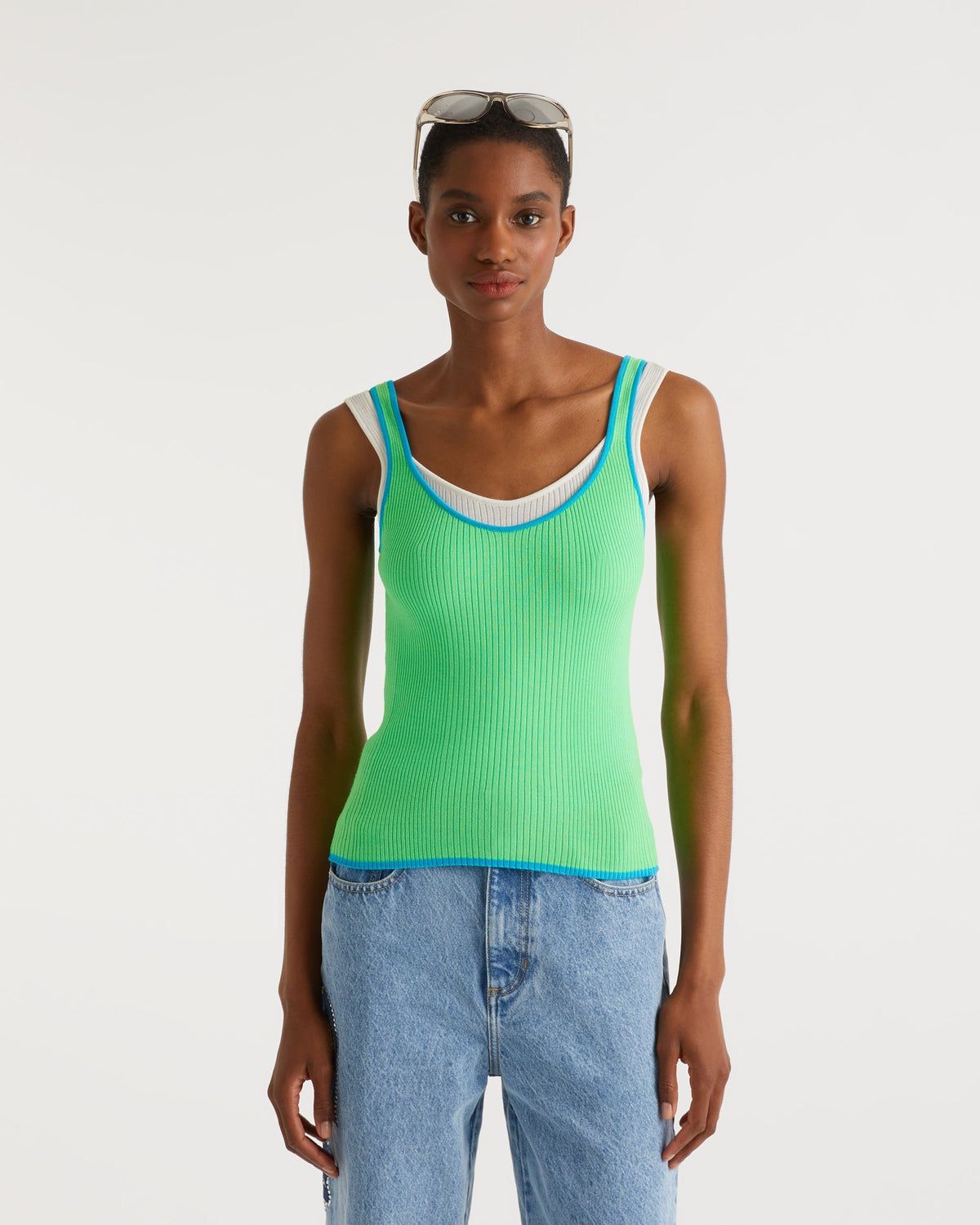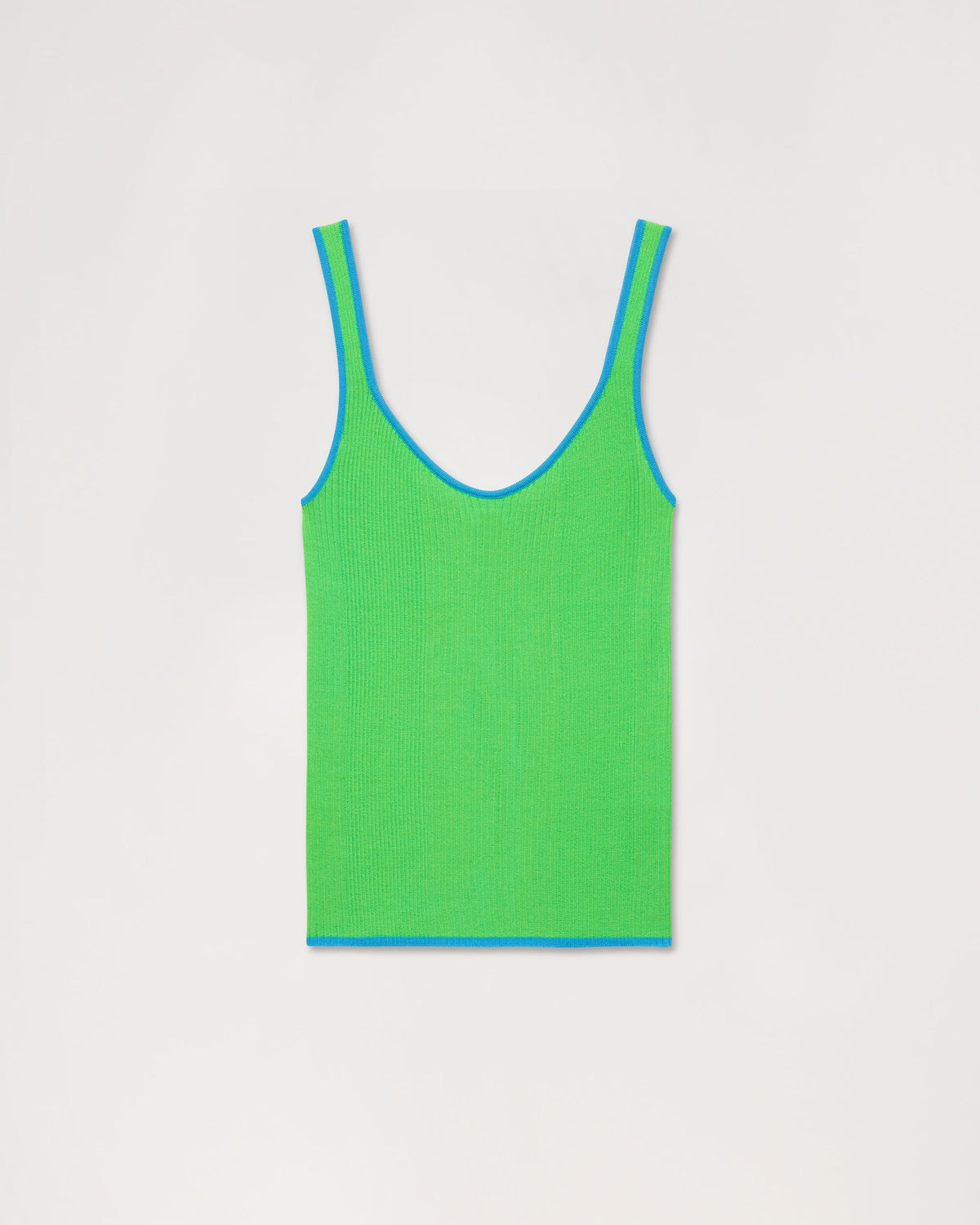 Top Debardeur à Côtes Liserets Contrastes - Laine Mérinos - Neon green