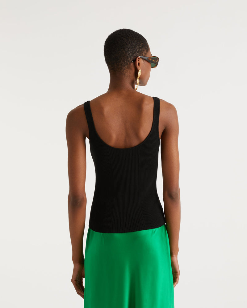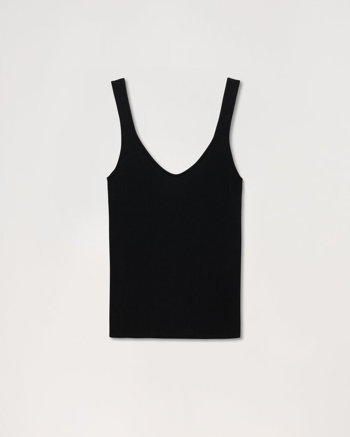 Top Debardeur à Côtes Uni - Laine Mérinos - Noir